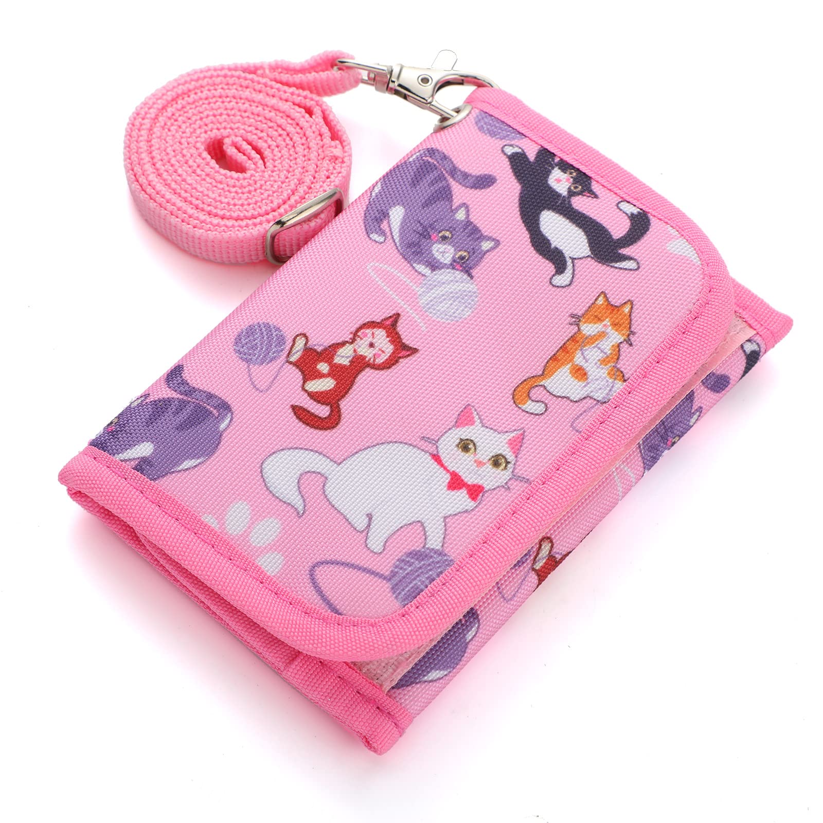 Vipdeal Cat Kids Wallet for Girls, Wallet for Little Young Girls 4-6 4-8 5-7 6-8 8-10 Ages Cute Small Toddler Wallet with Lanyard Christmas Gift, Pink