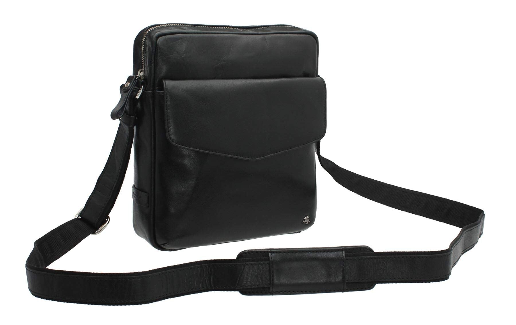 Beautifully crafted leather A5 shoulder/cross body bag with RFID pocket 23cm x 26cm x 6.5cm. The bag has a zipped top opening. Secure inside zipped pocket with RFID protection, two slip pockets suitable for mobile phone etc and a further large slip pocket . Front pocket secured by a flap with magnetic fastener. Zipped back pocket. The adjustable shoulder strap, with comfort shoulder pad, has a maximum length of 150cm. Visconti branded vibrant lining, antique brass fittings and logo branding. Supplied with presentation dust bag.