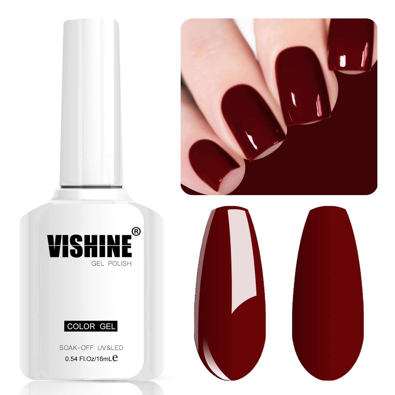 Vishine Dark Red Gel Nail Polish, 16ml Soak Off Gel Polish, UV Light Cure for Nail Art DIY Manicure at Home, Dark Red Cherry M114