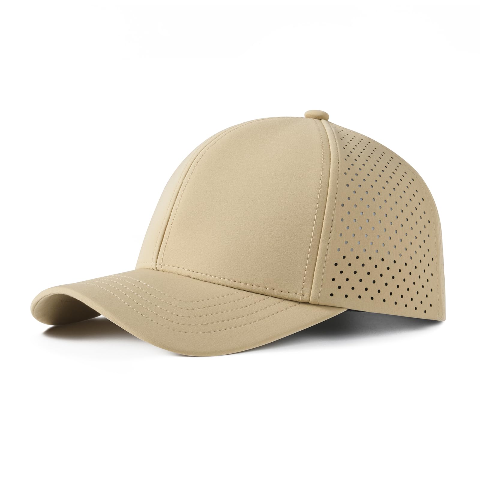 VOBOOM Men Quick Dry Baseball Cap Laser Cut Mesh Ball Cap Curved Brim Snapback Hat (Khaki)
