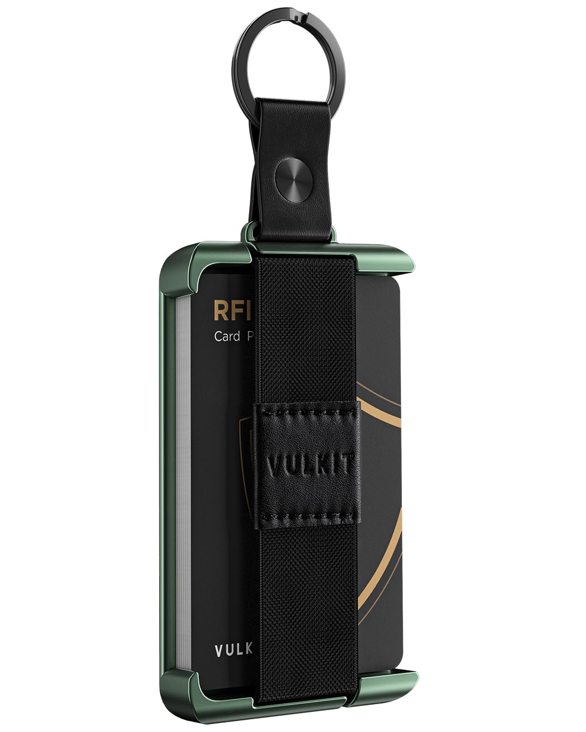 VULKIT Minimalist Slim Wallet For Men Front Pocket Alumimum Credit Card Holder Wallet With RFID/NFC Blocking Cards Green