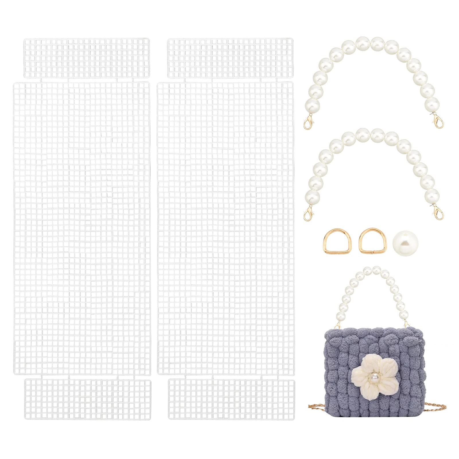WADORN 2 Sets DIY Crochet Knitting Bag Making Kit, Hand-Knit Woven Bag Making Tools Including Mesh Clear Plastic Canvas Sheets Imitation Pearl Straps Iron D Rings Handbag Crafting Material Accessory