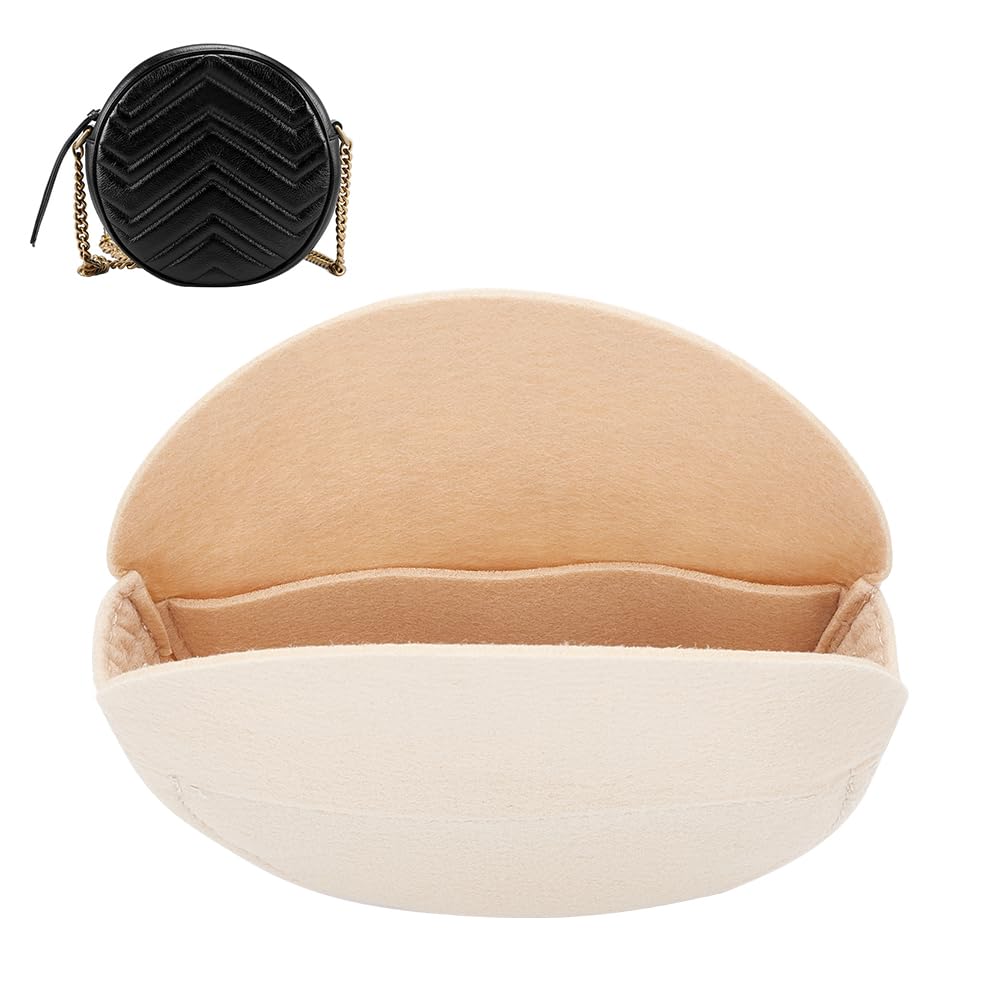 WADORN Felt Purse Organizer Inserts, Round Handbag Organizer Circle Shoulder Bag Shaper Felt Round Cosmetic Pouch Bag for Ophidia GG Small Women Purse Liner Bag In Bag, 6.4x2.2 Inch (Beige)