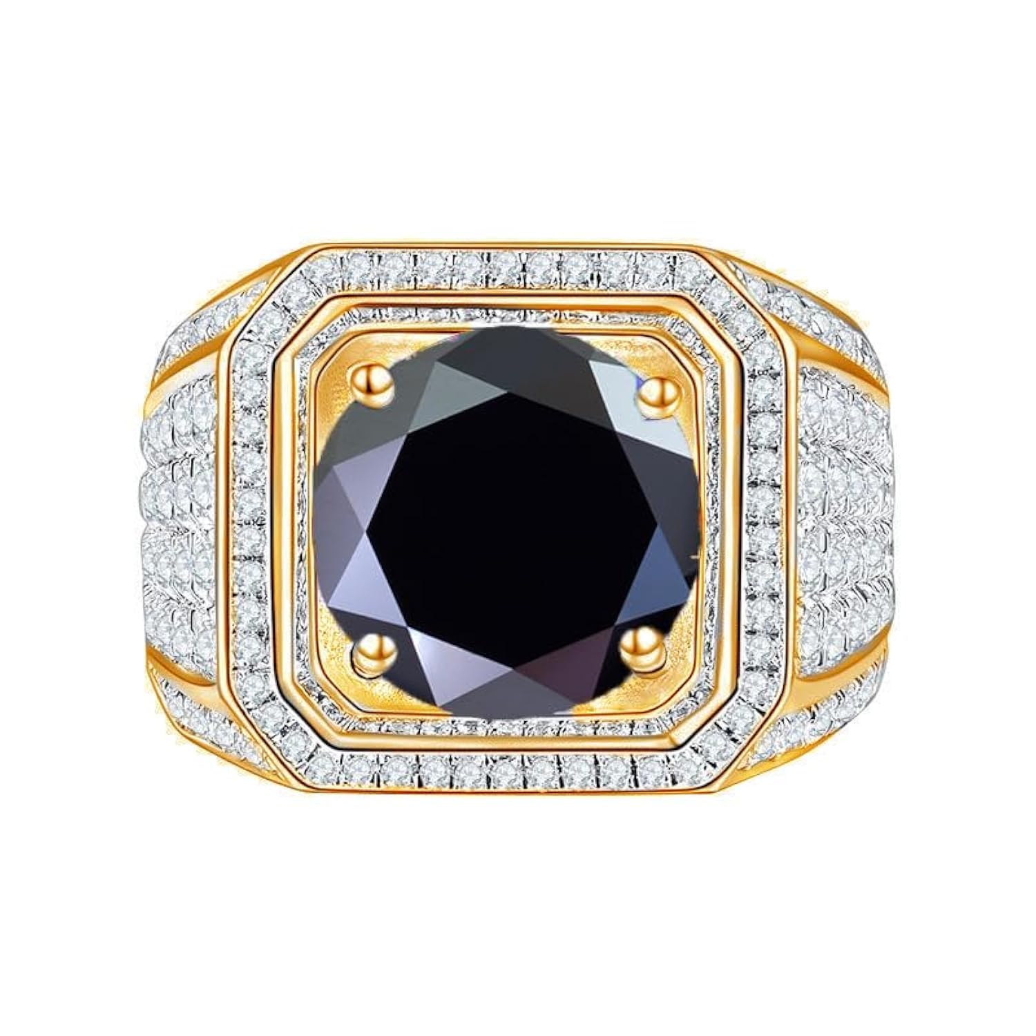 WAHZAUS Moissanite Engagement Rings for Men 1ct D Color VVS1 Diamond Rings Yellow/Blue/Green Moissanite Wedding Bands with Certificate (Black,7)
