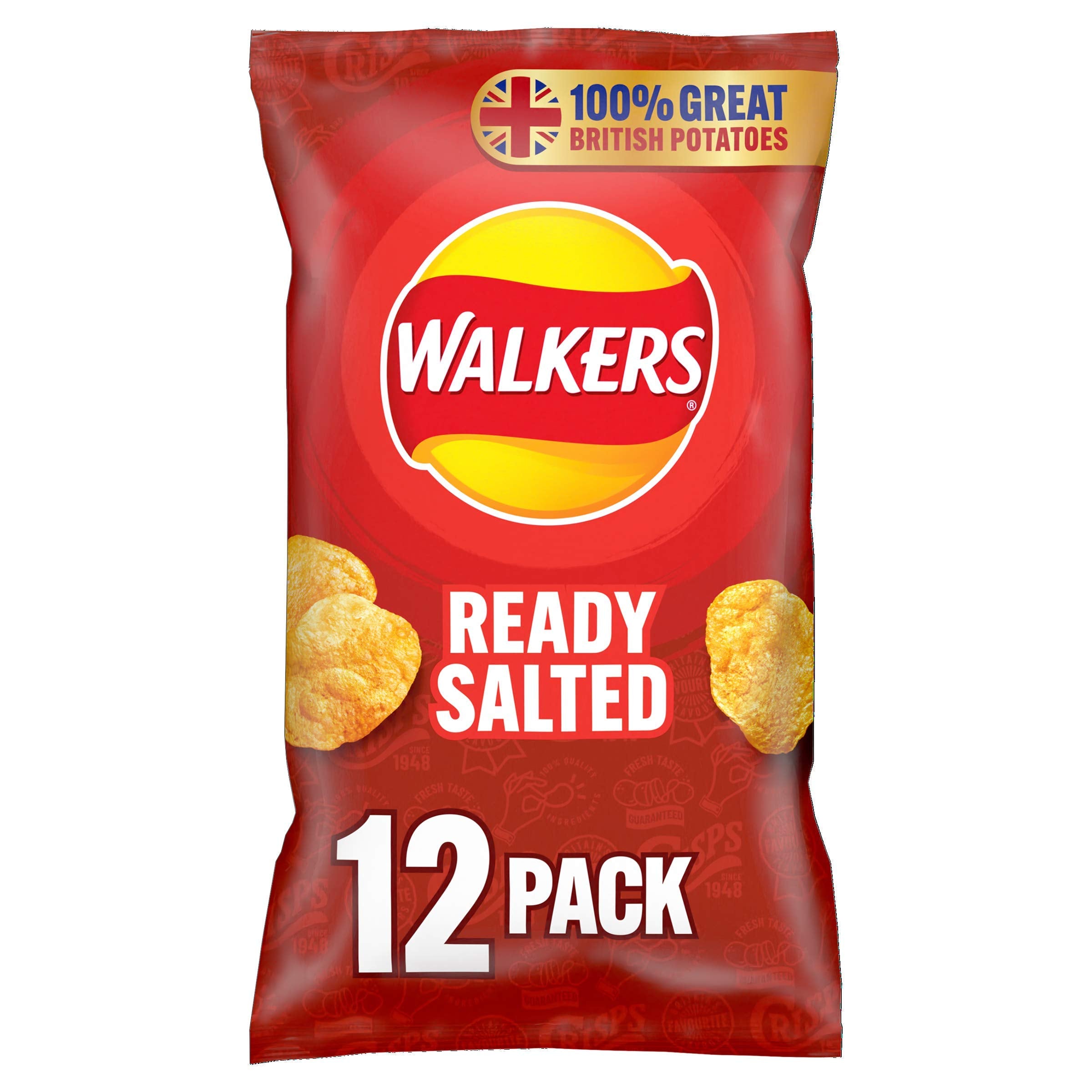 Product DescriptionWalkers Ready Salted Crisps 12x25g. 100% Great British potatoes No artificial colours or preservatives No MSG Suitable for vegetariansIngredientsReady Salted: Potatoes, Vegetable Oils (Sunflower, Rapeseed, in varying proportions), Salt. Made in a factory that also handles: Milk, Wheat, Gluten, Barley, Soya, Celery, Mustard.Manufacturer Contact InformationWalkers Snack Foods Ltd., PO Box 23., Leicester., LE4 8ZU., UK