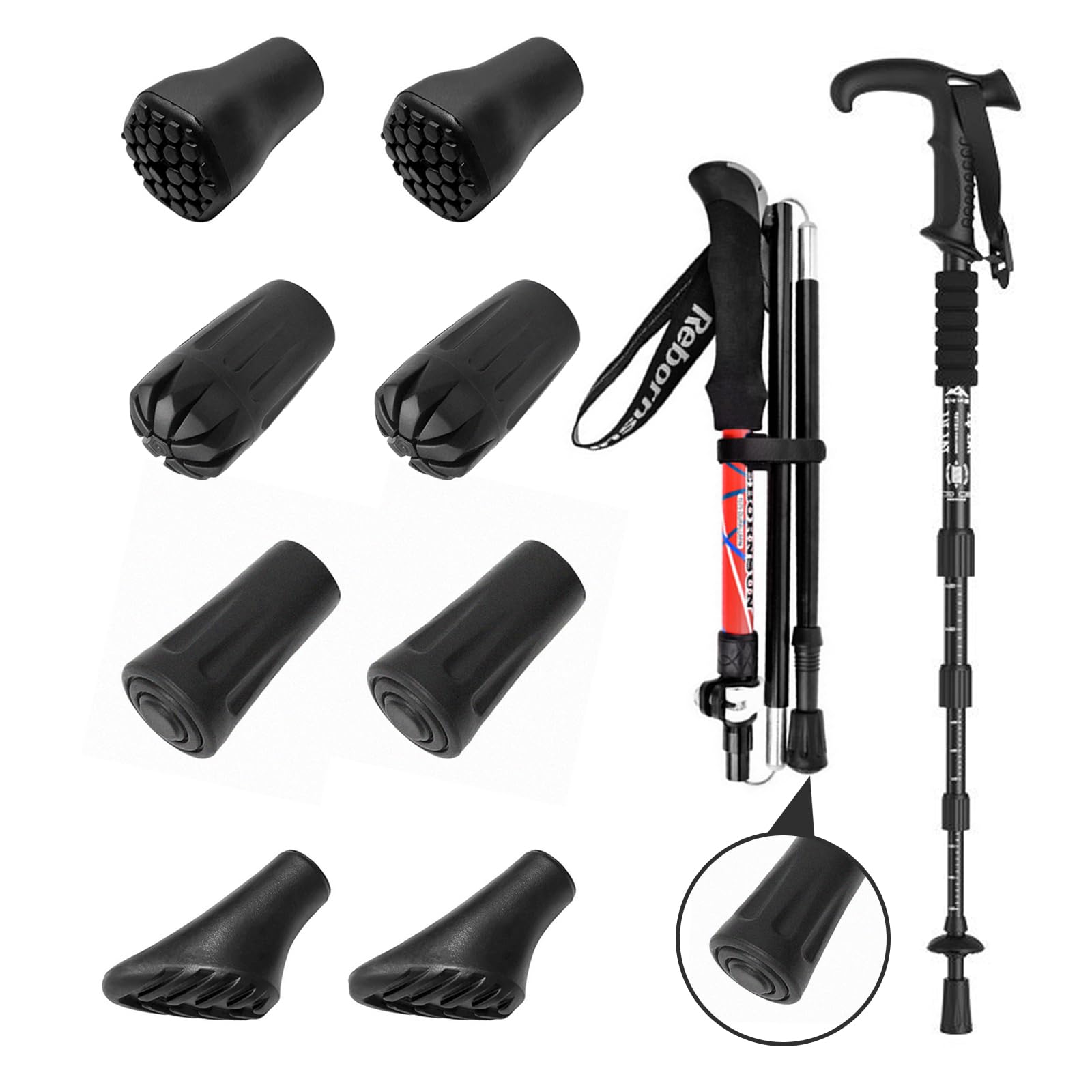 Walking Stick Rubber Ends Set, Shock Absorption Walking Stick Ends, Non-Slip Stable Replacement Cane Tip, Black Stick Rubber Ferrules for Adult Seniors Hiking (8)