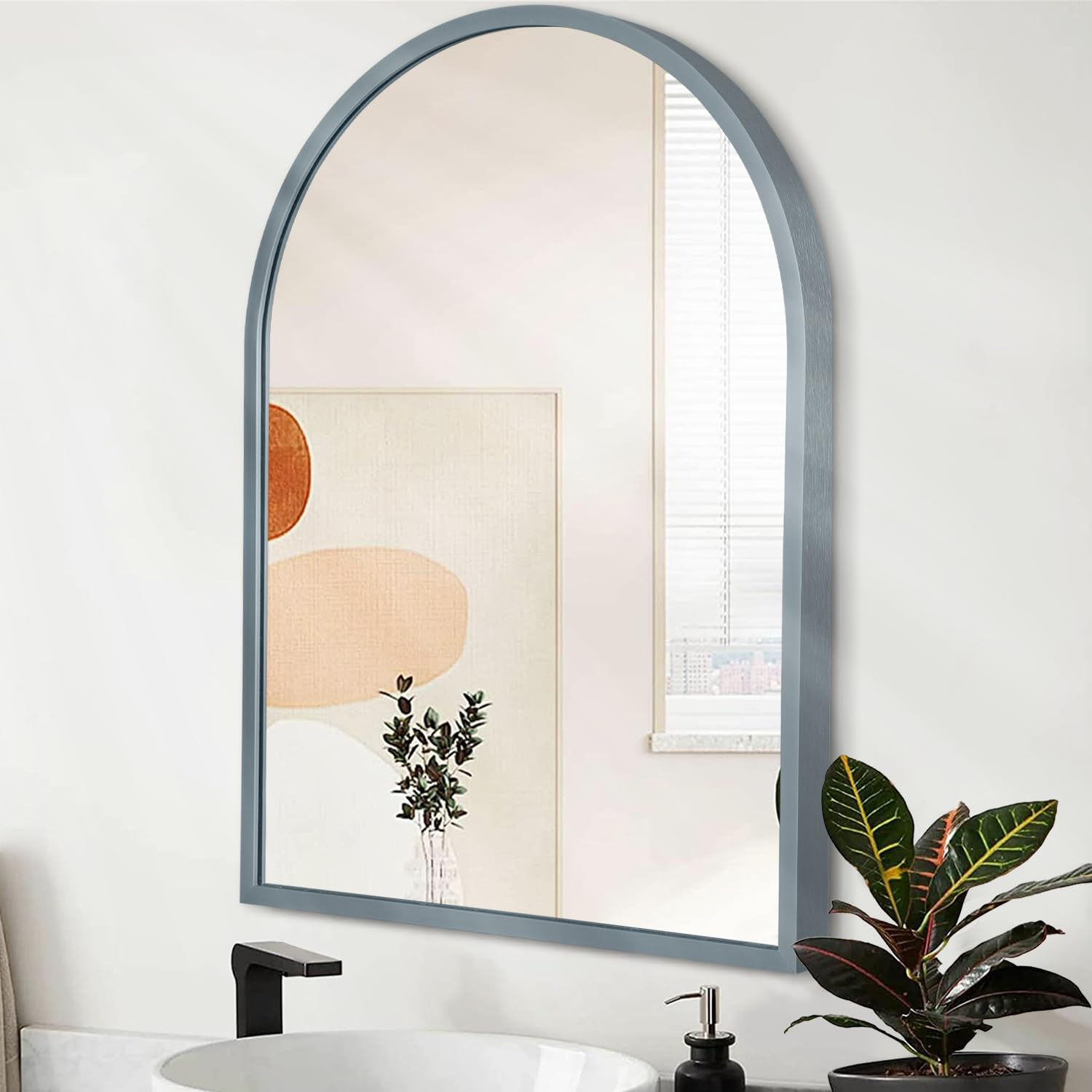 Wall Mirror Arched Bathroom Mirrors Aluminum Alloy Frame Contemporary Hanging Vanity Mirror for Living Room Bedroom Entryway Vanity, Brushed Metal Framed Wall Mounted Mirror Gray 16"x12"
