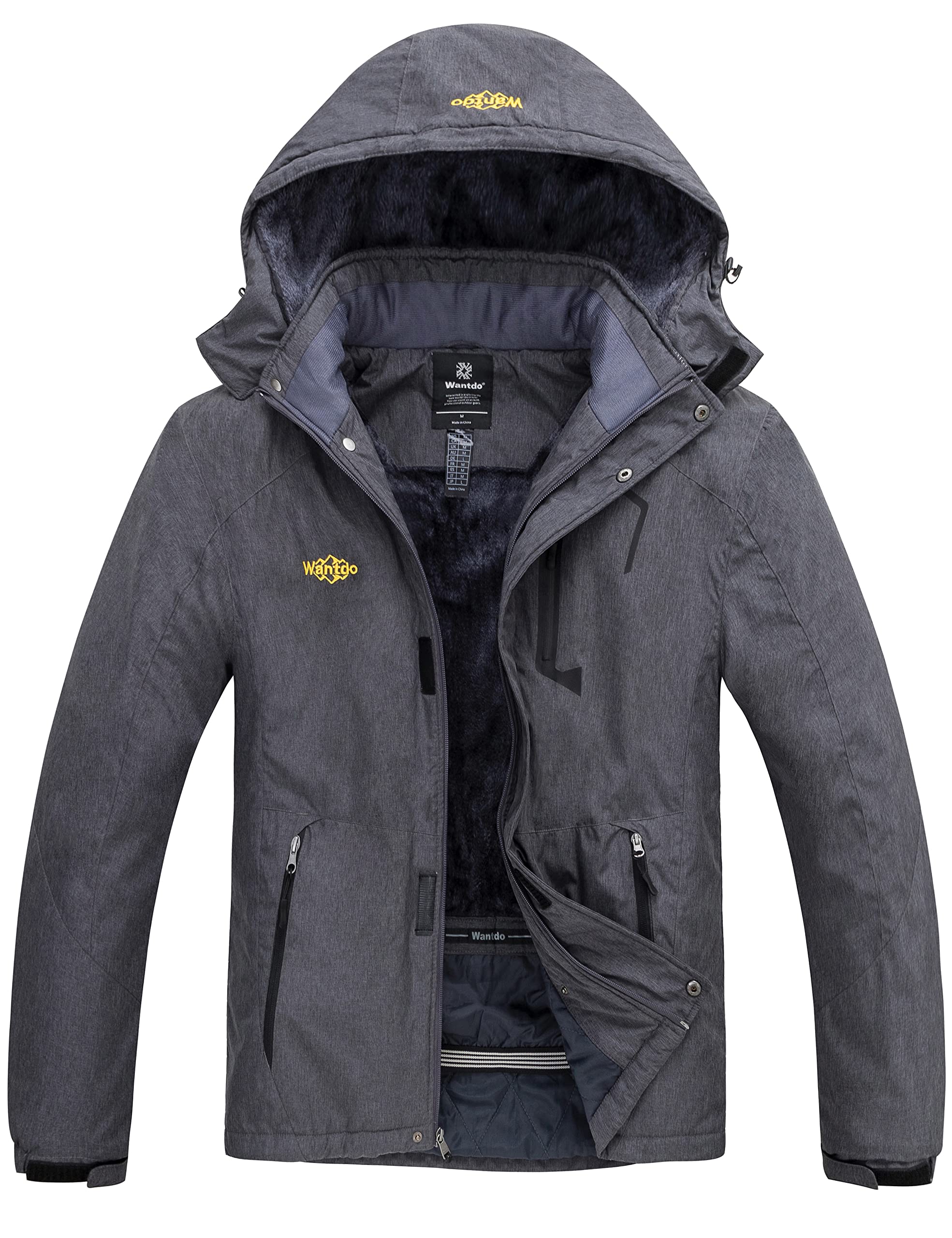 wantdo Men's Waterproof Fleece Ski Jacket Windproof Snow Jacket Dark Gray M