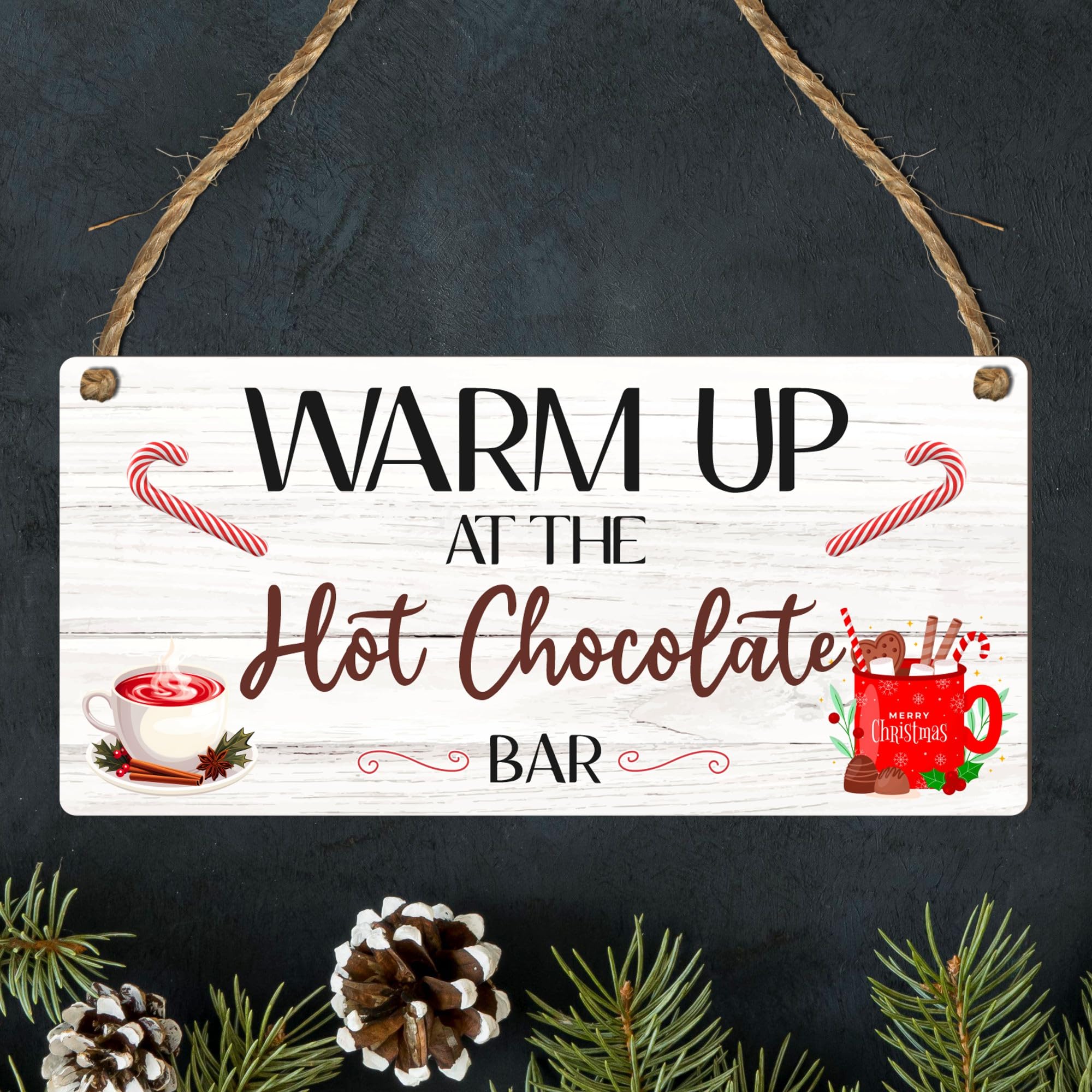 Get ready to welcome the holiday spirit with our delightful "Warm Up at the Hot Chocolate Bar" plaque. This charming sign is a must-have for every hot chocolate lover and a perfect addition to your festive home decor. Whether it's a cozy night by the fire, a holiday party, or a Christmas morning gathering, this plaque sets the perfect warm and inviting tone. Designed to complement any kitchen, coffee nook, or Christmas setup, it brings a whimsical touch to your festive celebrations.