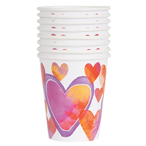 Use these watercolor hearts Valentine's day party cups to serve drinks to little cupids! These bounce paper cups feature a darling painted hearts design, making them a lovely choice for your Valentine's day party. Keep this 8-pack of cups in a stack at your drink station, or arrange these beverage cups around your table to complete a lovey dove table setting. Best of all, these disposable cups are manufactured in the USA! Make all your guests feel like they were hit with cupid's arrow by shopping the rest of our Valentine's day party supplies.