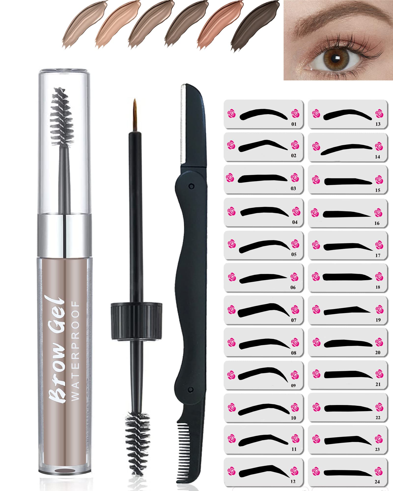 Waterproof Tinted Brow Gel Kit- Long Lasting Smudge-Proof Liquid Eyebrow Makeup, Tinted Brow Gel Set, Semi-Permanent Brow Gel, Volumizing Enhance Brow, with Brow Razor & Eyebrow Brush and 24Pcs Brow Stencil. Available in 6 Brow Shades, Ideal Valentine's Day, Women's Day, Mother's Day, Birthday, Thanksgiving, Christmas Makeup Gift for Ladies Who Love Beauty!