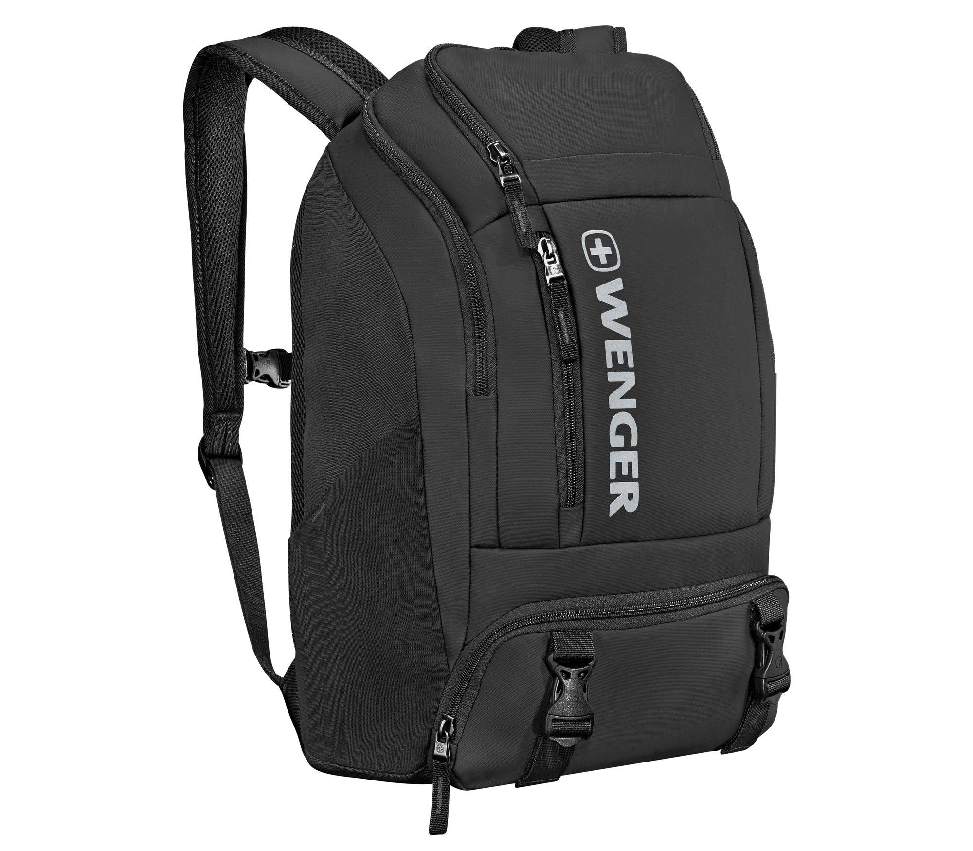 Wenger XC Wynd Travel Laptop Backpack - 16” Backpack with Laptop Compartment and Headphone Pocket, 28L Business Backpack, Wet Pockets, 50cm, Black
