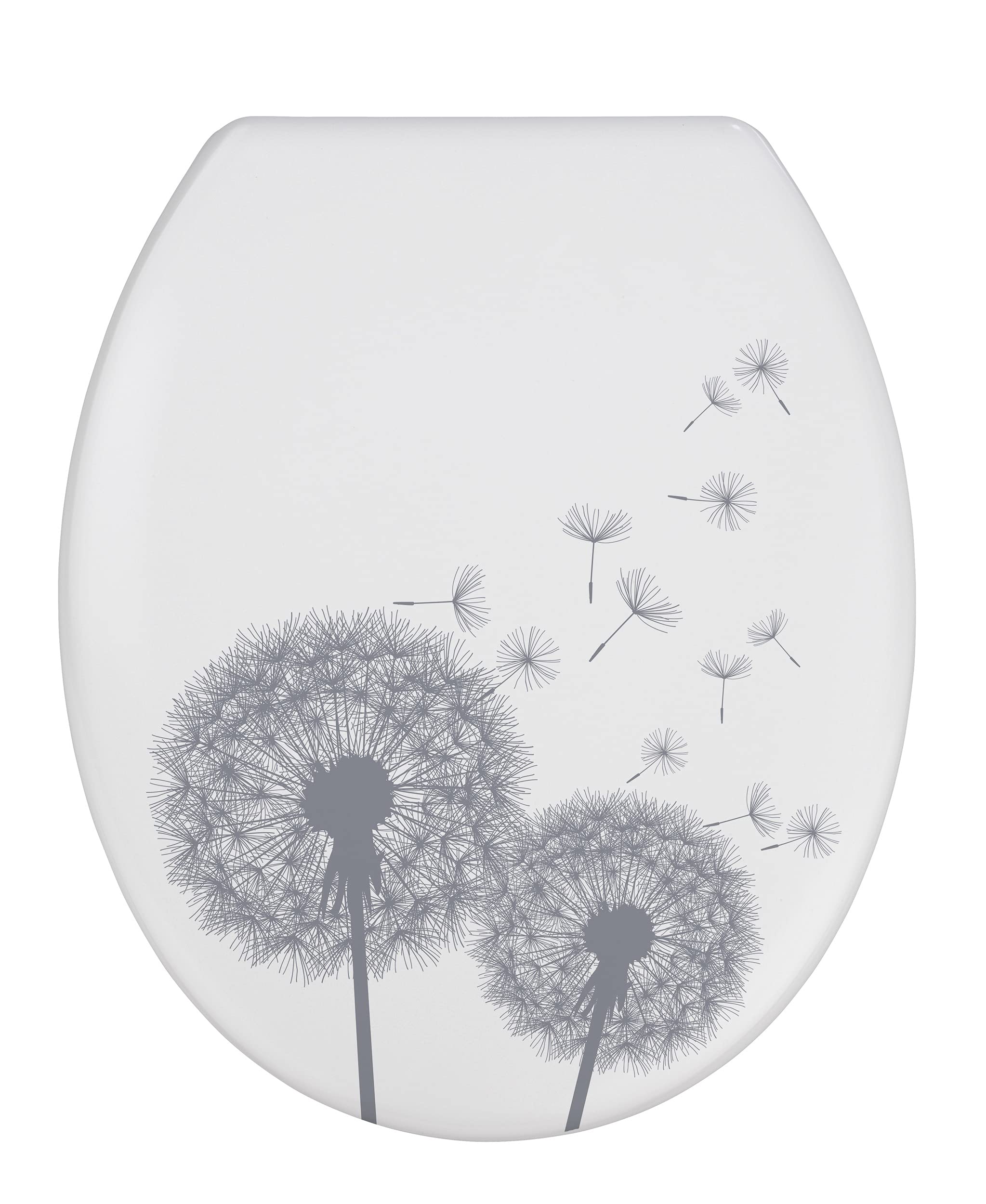 Product DescriptionHigh-quality toilet seat with an oval lid shape. Made of durable Duroplast with an elegant dandelion motif. With an integrated soft closing mechanism for quiet and gentle lid closing - Easy Close. Rustproof Fix-Clip hygienic stainless steel mounting element for easy attachment and detachment. Unbreakable, scratch-proof, durable and hygienic surface, including wall bumper. Box ContainsToilet seat