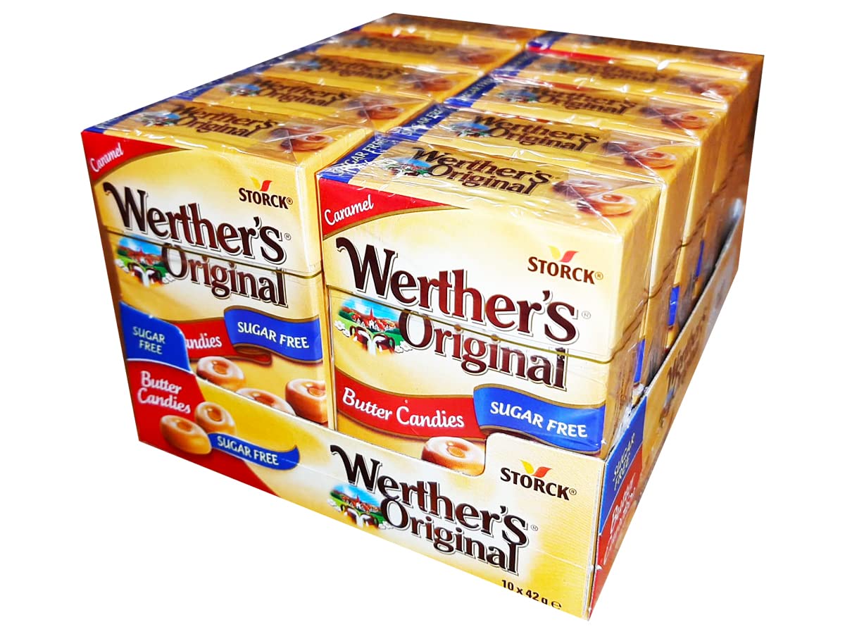 Werthers Sugar Free Butter Candies in a handy flip top box. 10 x 42g boxes suppled.