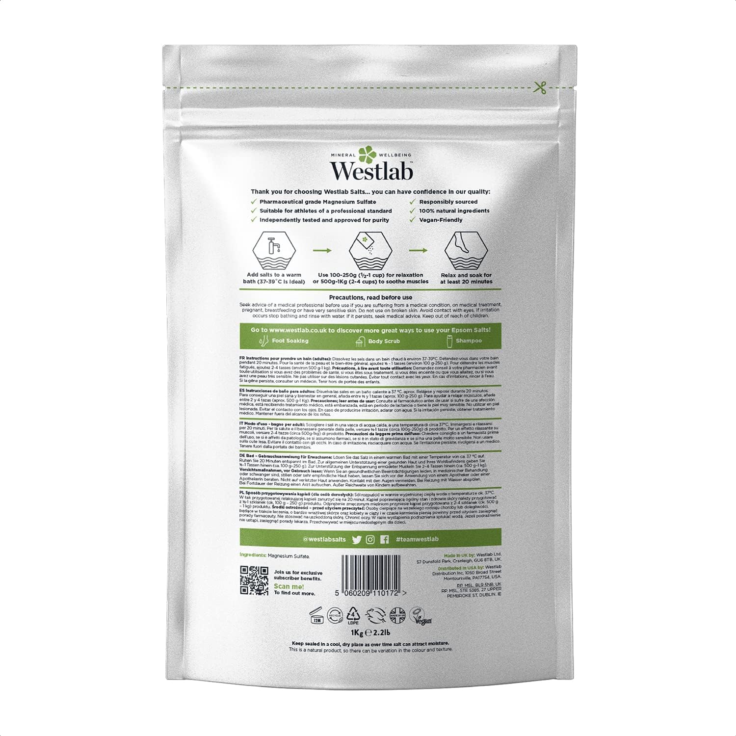 Pharmaceutical-grade Epsom salts help to relax tired and aching muscles excellent when used after sports and exercise. Westlab Epsom salt is a natural solution to aid recovery for a fit and healthy body. This tried and tested mineral is ideal for muscle relaxation and sports Recovery. Westlab Epsom salts are made of pure magnesium Sulfate. Available in 2 kg. Indications Sore Muscle Relief Ingredients Magnesium Sulfate. Directions Dissolve salts in a warm bath of 37-39°C. Relax and soak for 20 minutes. For general skin health and wellbeing add 1/2-1 cup (approx 100g-250g) to your bath. To help relax tired and aching muscles use 2-4 cups (500g-1Kg). Safety Warning Seek advice of a healthcare professional before use if you are suffering from a medical condition, are on medical treatment, pregnant, breastfeeding or have very sensitive skin. Do not use on broken skin. Avoid contact with eyes. If irritation occurs rinse with water. If it persists, seek medical attention. Keep out of reach of children. Box Contains 1 x Epsom Salt 2Kg