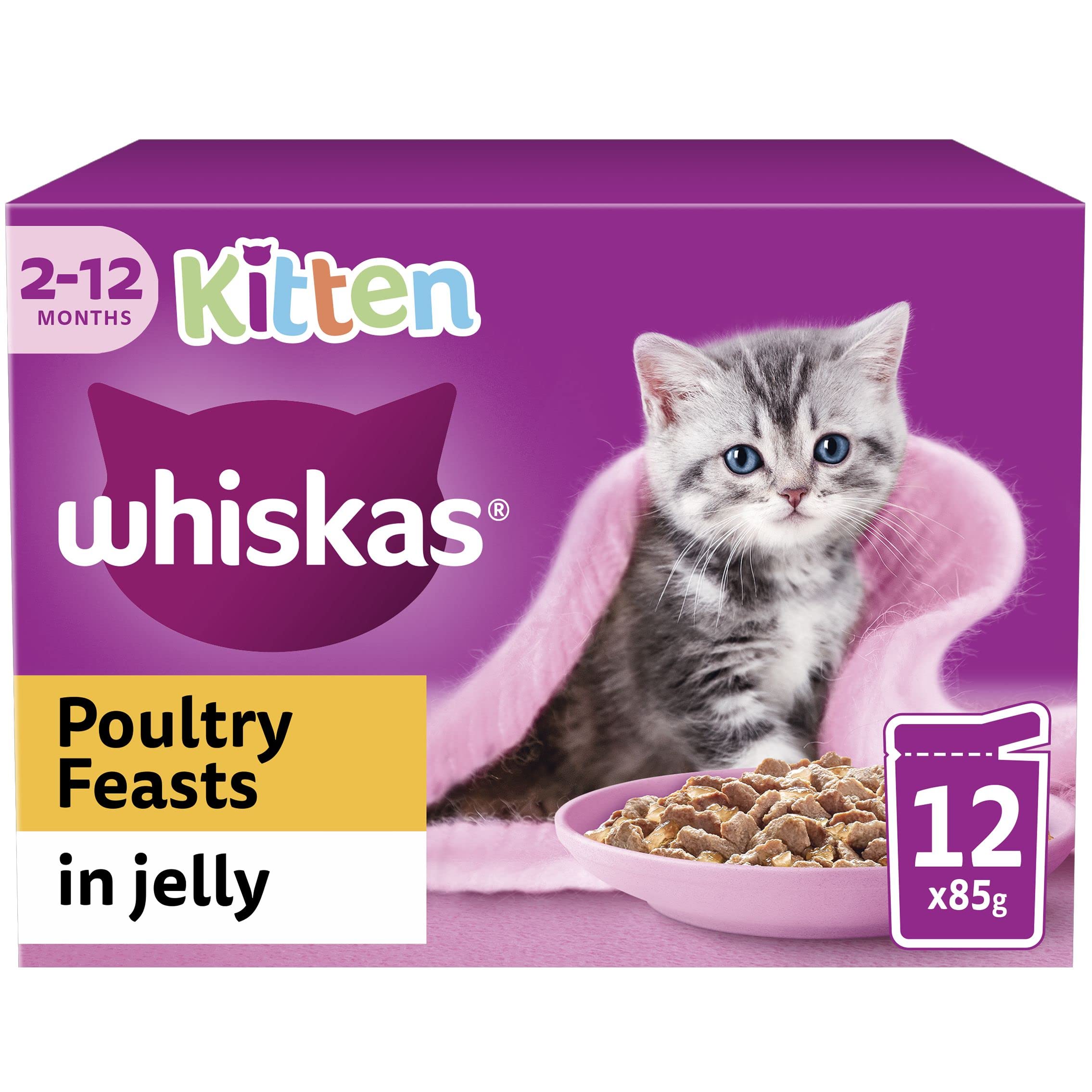 Whiskas Kitten Poultry Feasts wet cat food pouches in jelly are specially prepared to preserve the natural goodness and deliciousness of high quality ingredients and will see your kitten rush to the bowl faster than ever before! Each kitten food pouch is lovingly crafted to contain everything your little friend needs to grow up happy and healthy.