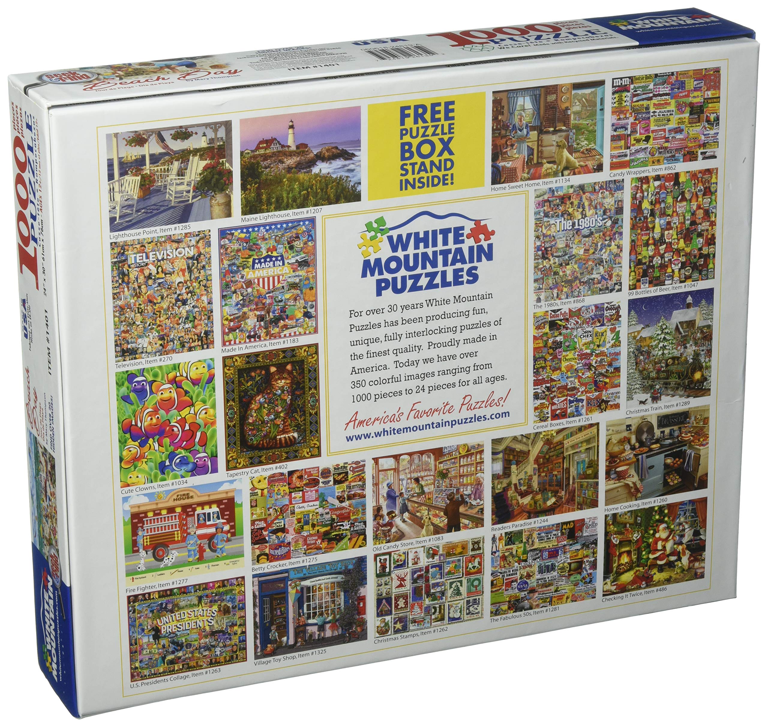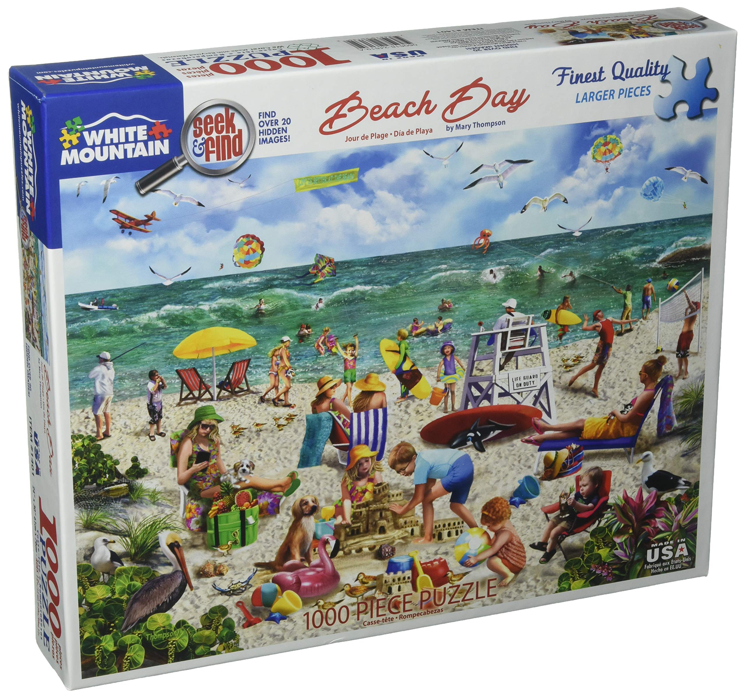 What fun to pretend we’re actually at the beach, wading through surf and sifting through sand for over 20 items that artist Mary Thompson has hidden in her painting! The picture on the box shows an idyllic day at the shore, while the 1,000 piece puzzle inside has additional items to make it even more fun to build! Fear not - there will be a cheat sheet inside to help you with your search, so don’t forget the sun screen! Finished size 24” x 30”. Lovely Puzzle Artwork can evoke joyous memories of home. Puzzle building has amazing benefits. Puzzles enhance motor skills, hand-eye coordination & problem solving skills. Delays cognitive decline, improves short term memory, mood & spatial awareness. Puzzle Artistry combines the artwork with the design of the cut pieces to enhance the enjoyment of the user. Complexity of cut, artistry & detail are all evident of the quality of each piece . Quality Pieces: extra large, easy to handle interlocking pieces made of sturdy blue chipboard on recycled paper. Completed dimensions: 24 x 30 inches. Made in USA. Every White Mountain Puzzle includes our Happiness Guarantee: If you are not completely delighted with your puzzle experience, we will replace your puzzle with a new one for free. Promise.