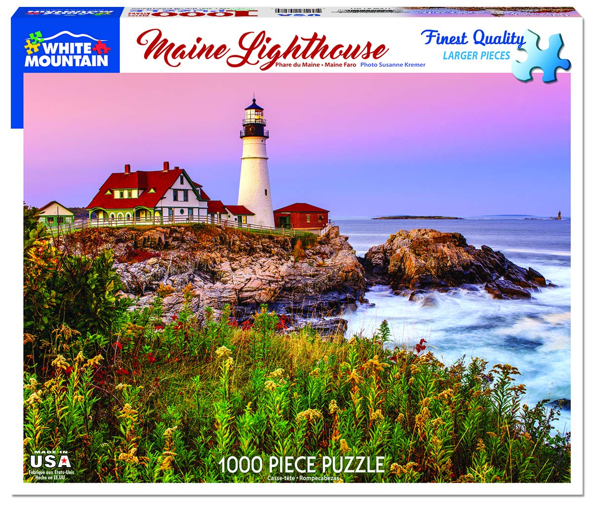 The Portland head light, located in beautiful cape Elizabeth, is the oldest lighthouse in the state of Maine. In 1787, while Maine was still a part of Massachusetts, George Washington commissioned two masons from nearby Portland, Jonathan Bryant and John Nichols, to oversee construction of the Lighthouse using easily sourced local material. The Lighthouse was completed on January 10, 1791 with its first keeper, Joseph K. Greenleaf, appointed by George Washington. The light is still in use today and well worth a visit to the Rocky coast of Southern Maine. Photo By Susanne kremer. Thrill the entire family piecing together the Maine lighthouse jigsaw puzzle; 1, 000 pieces of fun and entertainment everyone will enjoy! Art jigsaw puzzles are a fun and inexpensive way to enjoy beautiful works of art firsthand. Jigsaw puzzles are also used to boost cognitive skills; develop hand-eye coordination, fine motor skills, problem solving, shape recognition, memory, and task completion. The White Mountain puzzles - Maine lighthouse includes 1, 000 unique interlocking pieces made of sturdy blue chipboard on recycled paper. Extra large sized pieces for easy handling. Puzzle dimensions (completed): 24 x 30 inches. Every White Mountain puzzle is proudly manufactured in America with a 100% customer satisfaction.
