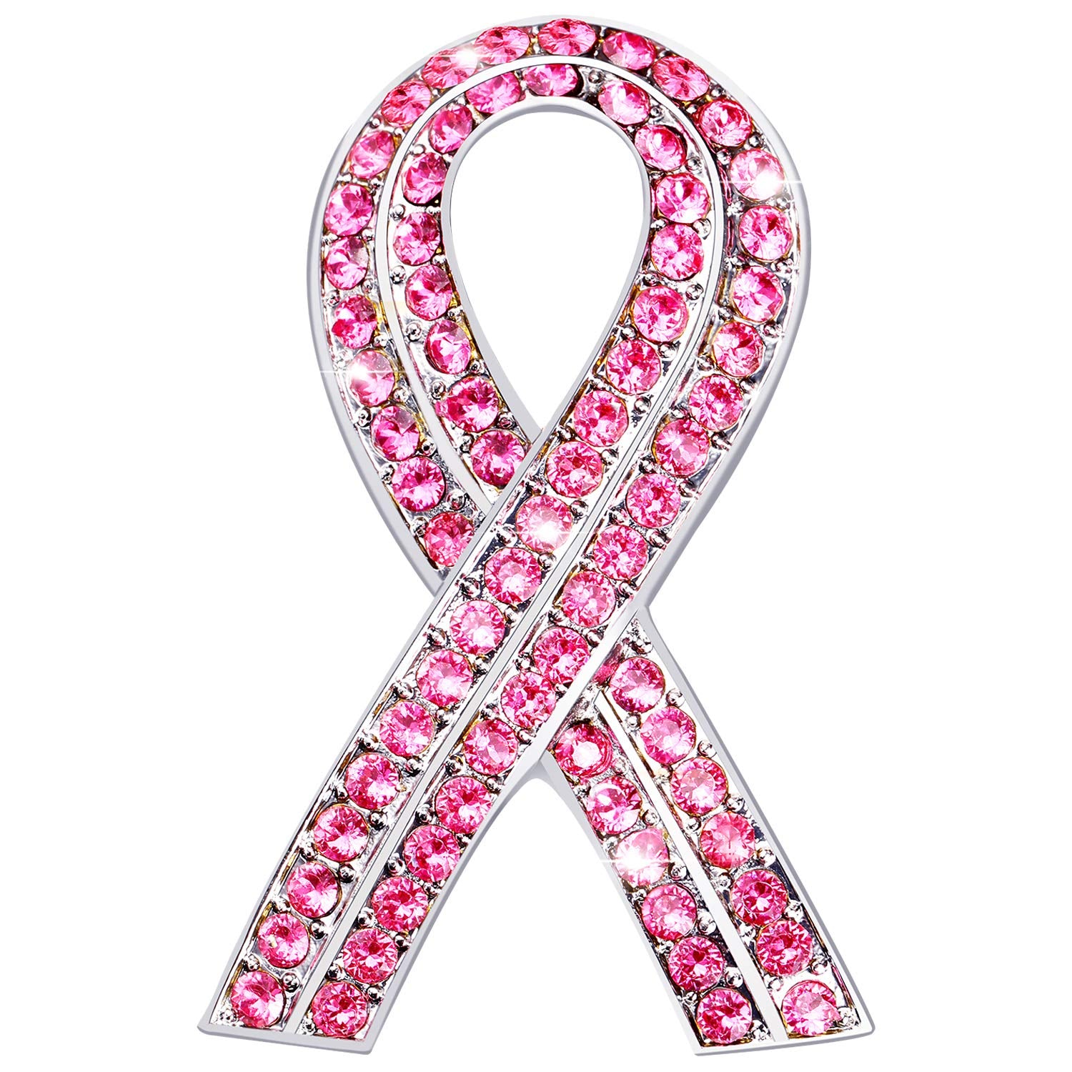 WILLBOND 8 Pieces Breast Cancer Awareness Pins Pink Brooch Pin Ribbon Crystal Lapel Pin for Women