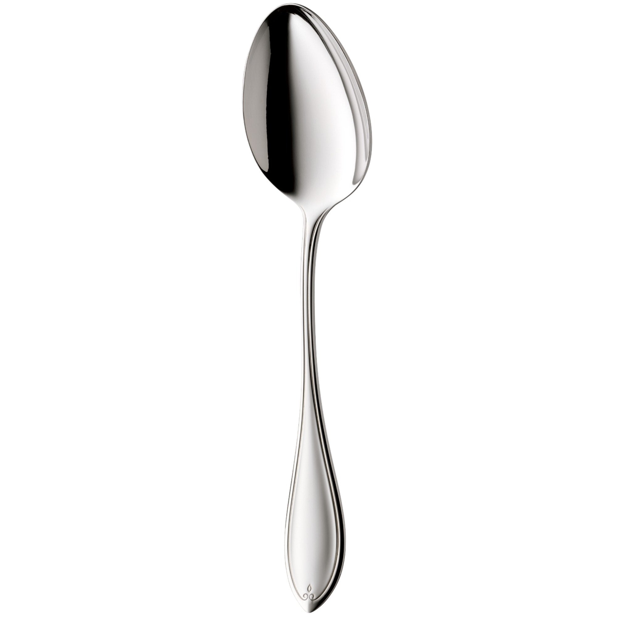 Various features make this cutlery so unique: its octagonal knife handle, an elaborately crafted bolster, the decorative line design and the leaf motif at the end of the handle. Created by Fred Danner, the design was inspired by the functional forms typical of the Biedermeier period. High quality knives with inserted forged blades guarantee long-lasting cutting performance, and the Cromargan protect finish makes the cutlery highly resistant to scratches. This polished cutlery range also includes numerous complementary items and cutlery serving pieces. Whether a small breakfast, copious lunch, garden party or brunch: this trio is in use at every meal - although sometimes not all together. The tablespoon is often used for soups and pasta dishes, whereas the knife cuts the food on the plate into bite-sized pieces. The table fork is used to hold the food in place while cutting with a knife. The food is then speared by the tines of fork.