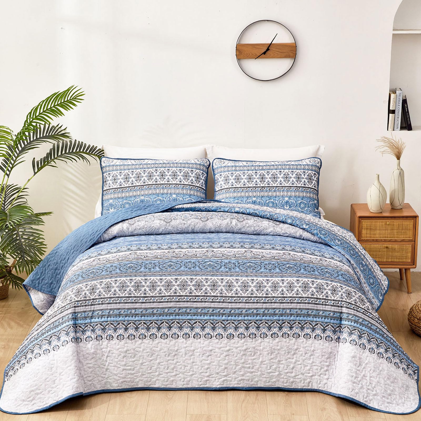 -Cal King Quilt: 96 inches W x 106 inches L; Shams: 20 inches W x 38 inches L