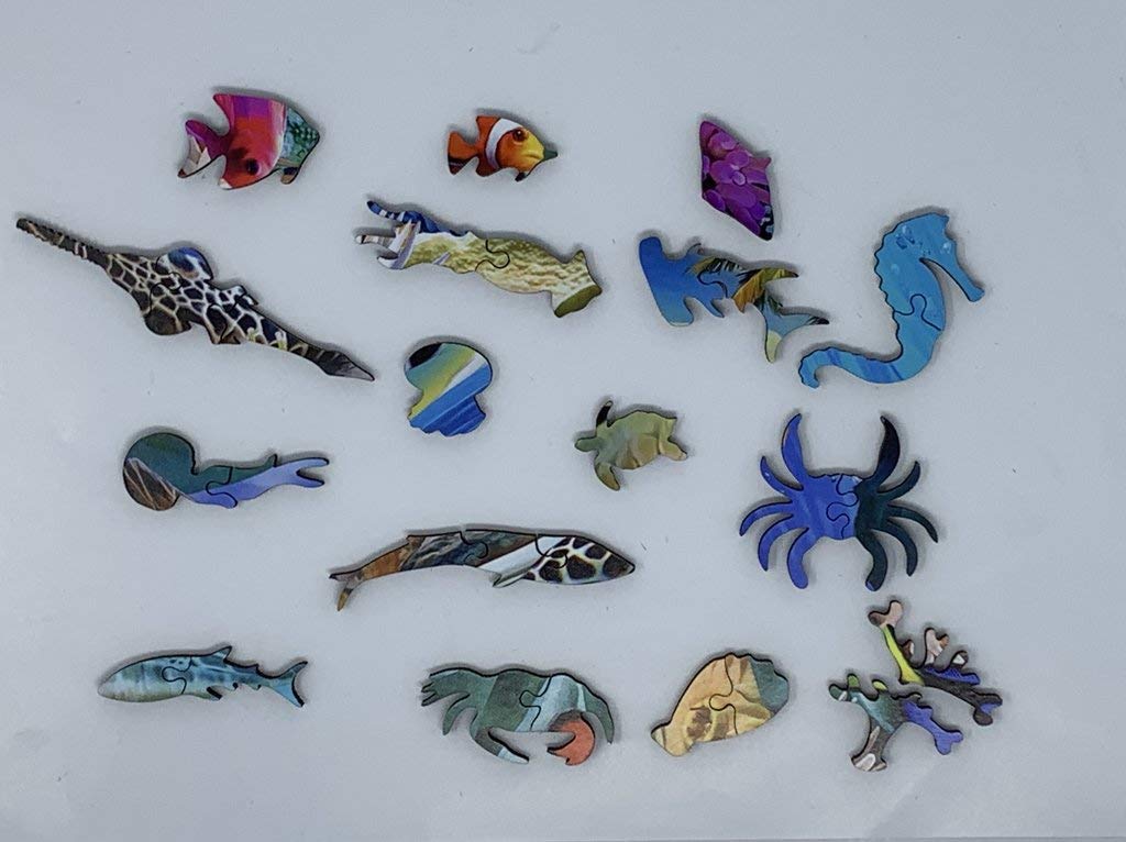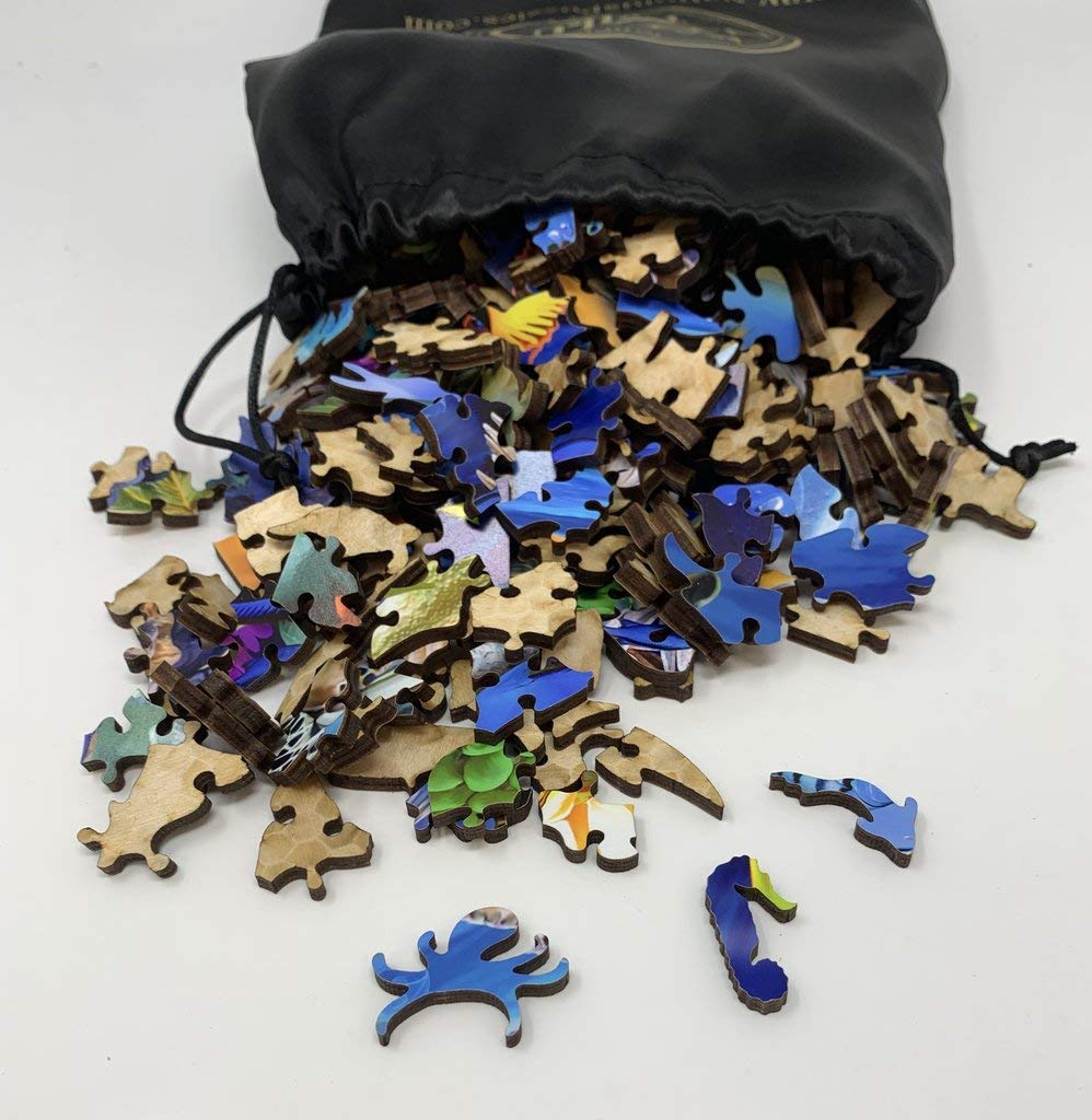 EVERY LASER CUT NAUTILUS WOODEN JIGSAW PUZZLE is manufactured in the U.S.A. from 4mm Finnish Birch Plywood that has been harvested from sustainably managed forests. The puzzles are cut in the classic Victorian puzzle style and feature creative, intricate pieces, and many shaped figural whimsy pieces, that are designed to match the theme, style and art of the puzzle. The cutting technique guarantees that every piece is a little work of art. Wooden Puzzles do not interlock in the same way as cardboard puzzles, so there is a different tactile experience in putting the puzzle together, making the puzzle more challenging to work, but incredibly entertaining.