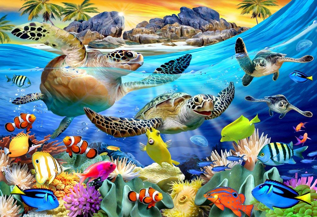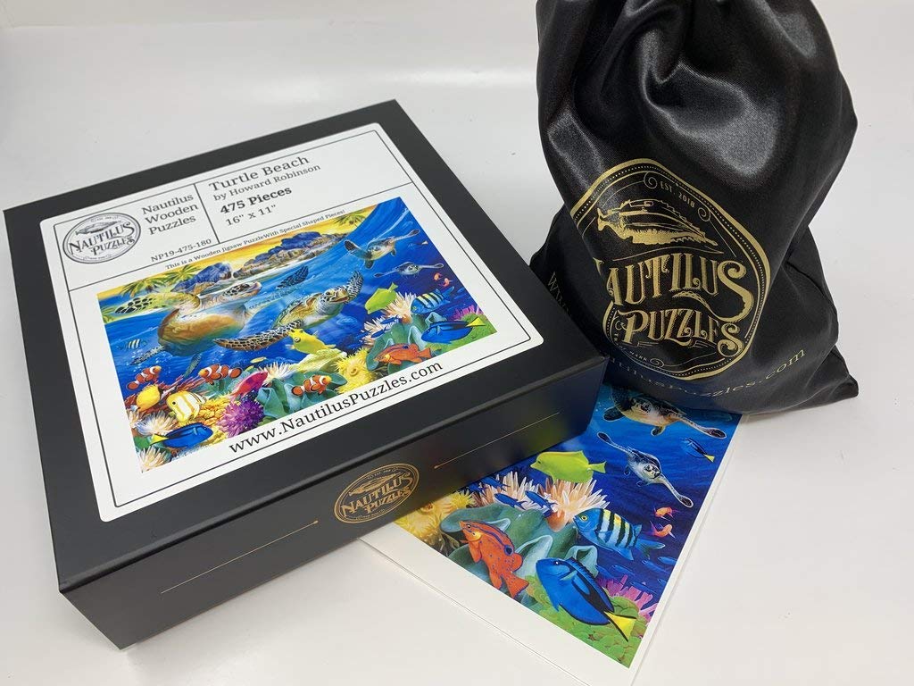 Turtle Beach by Howard Robinson, Wooden Jigsaw Puzzle - 475 Pieces, finished size 16” x 10”,