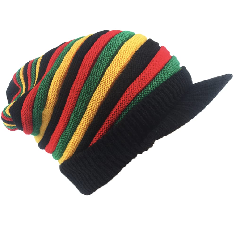 Wool Knit Rasta Hat Reggae Jamaican Cap Colorful Beanie Hat Crochet Knitted Slouchy Baggy Cap