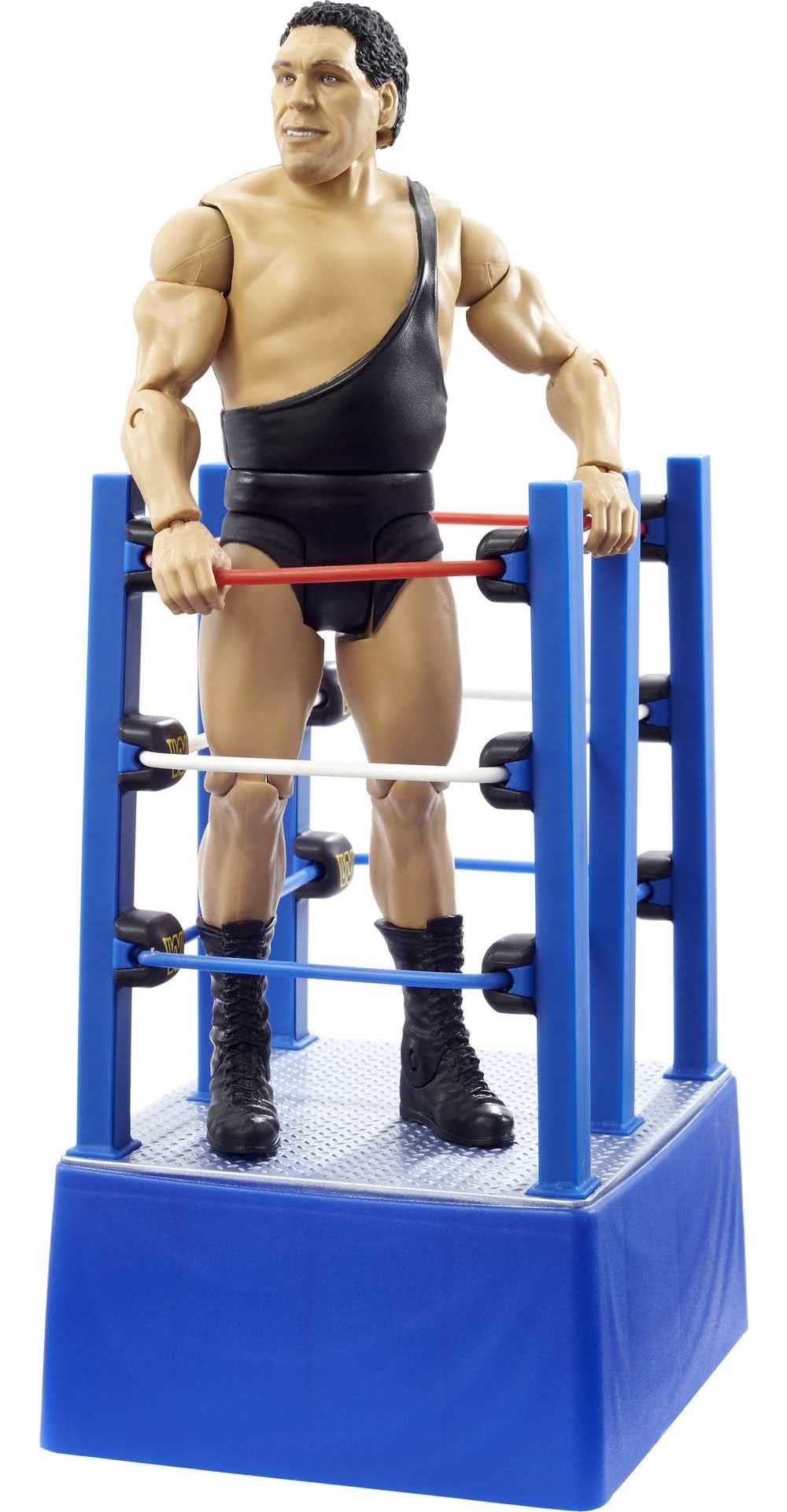Celebrate iconic WrestleMania Moments with WWE Superstar legend action figure Andre the Giant! Capture the legend's WrestleMania III entrance to the ring with the included authentic real-rolling ring cart. The 6-in / 15.24-cm scale figure features life-like True FX facial detailing and multiple points of articulation for kids ages 6 years and older to play and collectors to display. Each sold separately, subject to availability. Colors and decorations may vary.