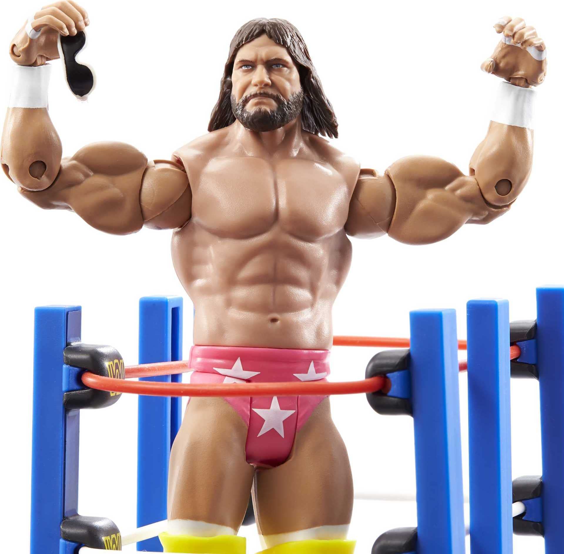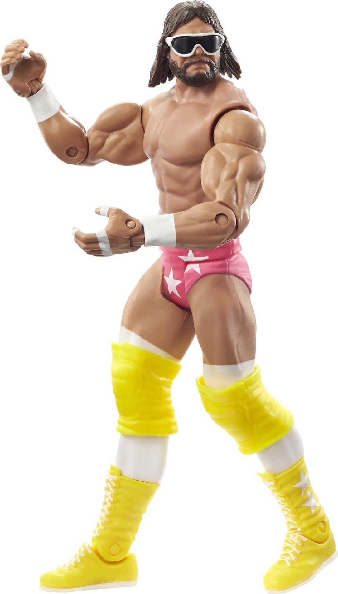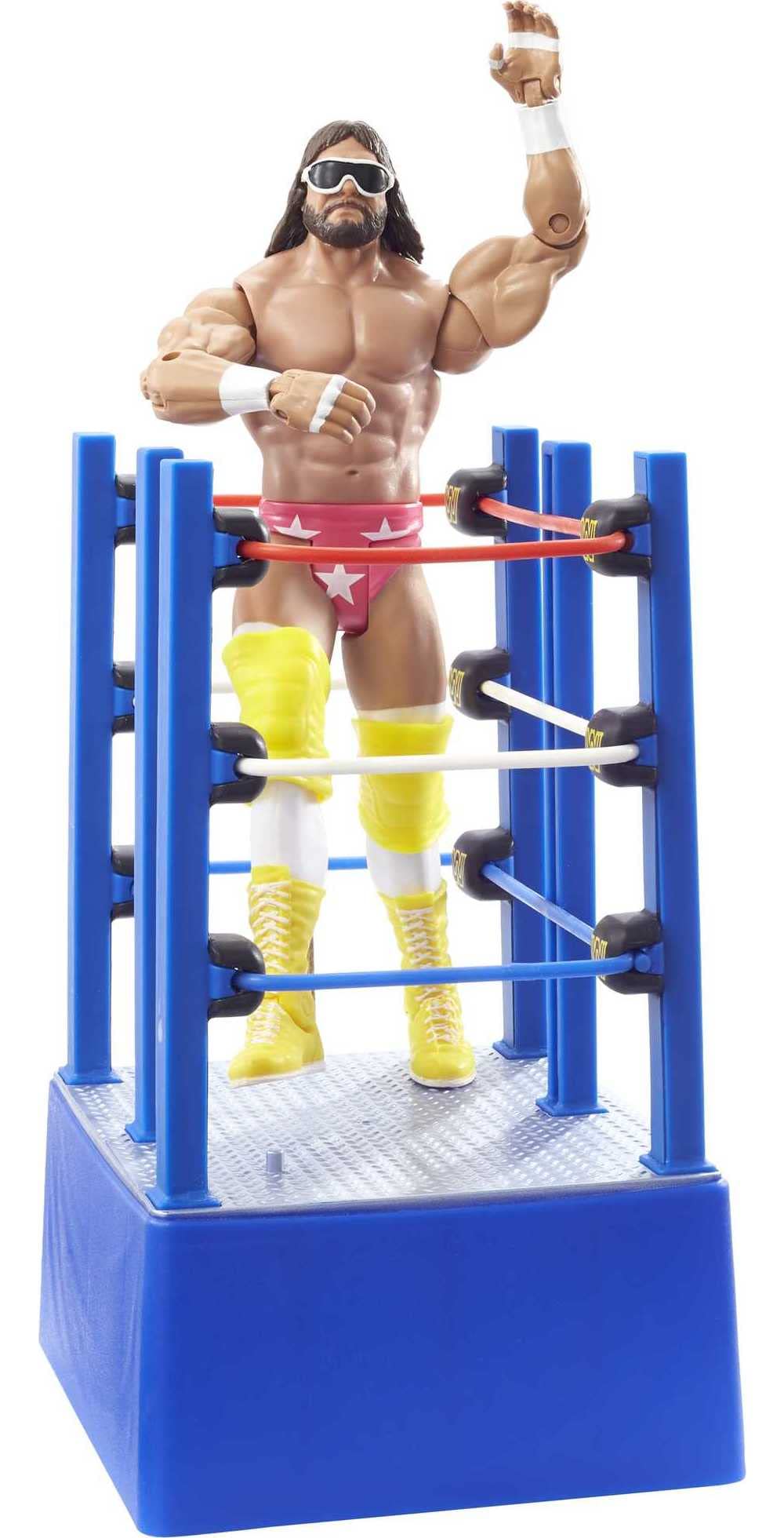 Celebrate iconic WrestleMania Moments with WWE Superstar legend action figure "Macho Man" Randy Savage! Capture the legend's WrestleMania III entrance to the ring with the included authentic real-rolling ring cart. The 6-in / 15.24-cm scale figure features life-like True FX facial detailing and multiple points of articulation for kids ages 6 years and older to play and collectors to display. Each sold separately, subject to availability. Colors and decorations may vary.