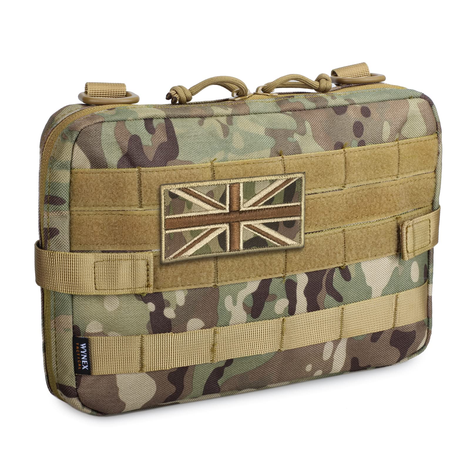 Multiple elastic bands and inner pockets. The elastic band can help you fix the tactical pen, hooks, flashlight etc; The inside pocket helps you distinguish like your cell phone, keys, etc.