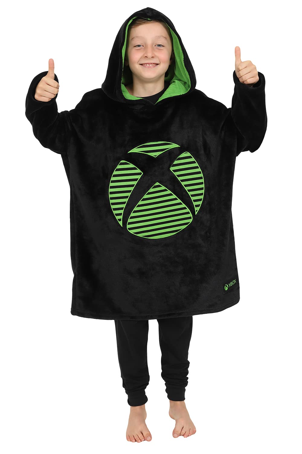 XBox Gaming BLANKET HOODIE -- super warm hooded blanket from Xbox official gamer merchandise. The hoodie blanket features a hood, long sleeves, and a fluffy sherpa lining. Great outfit to snuggle up and play your favourite Xbox games. Would make lovely Gift for boys and Girls