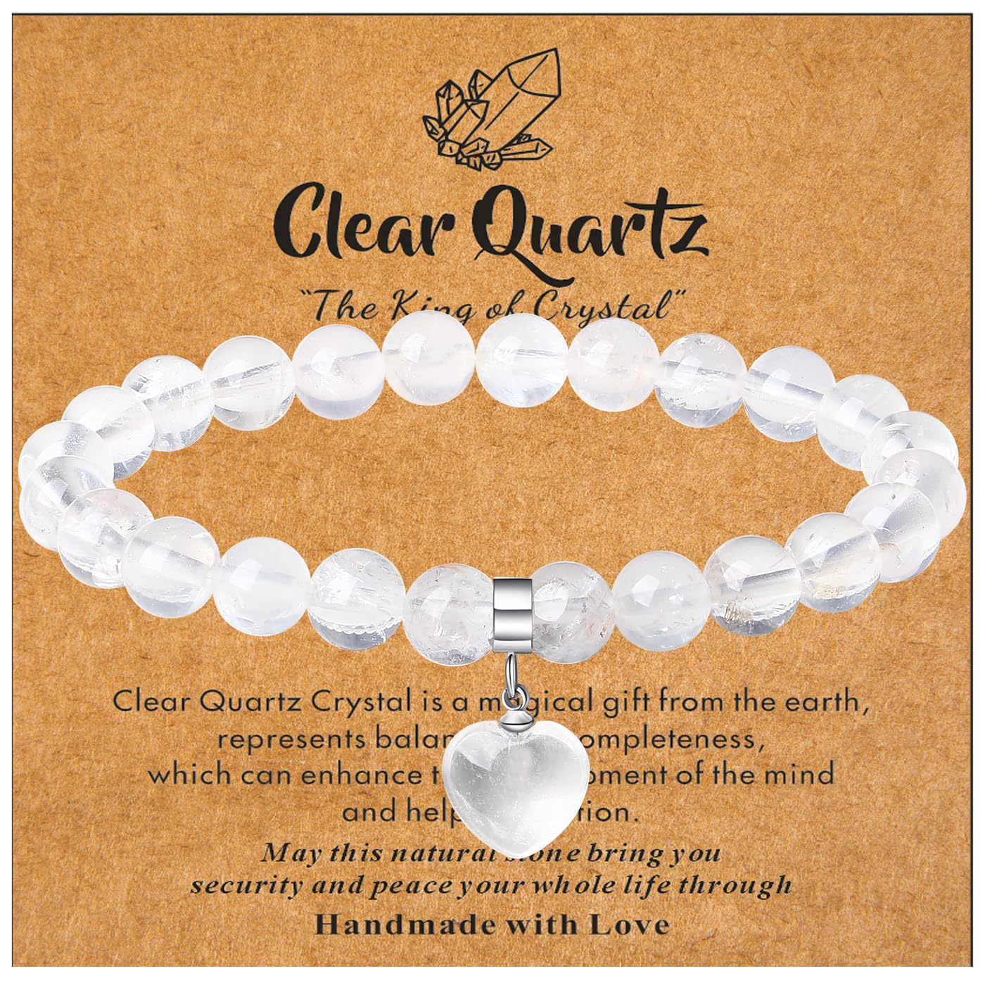 XIANNVXI Clear Quartz Bracelet Clear Quartz Crystal Bracelet Heart Bracelets for Women,Ladies Bracelet 8mm Gemstone Beaded Bracelet Jewellery Gift for Anniversary Valentines