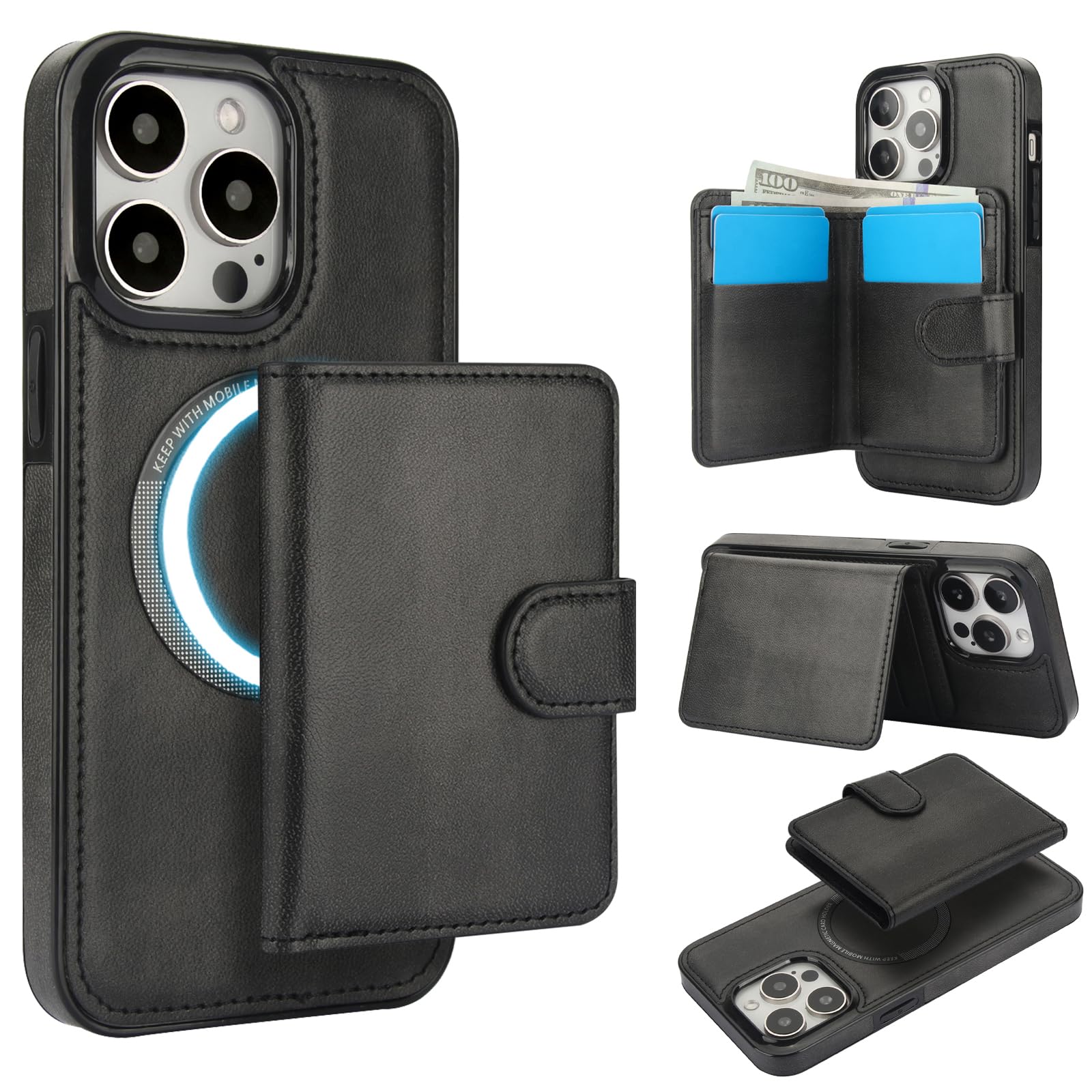 XIMAND for iPhone 16 Pro Max Case with 2 in 1 Detachable Magnetic Wallet, 4 Card Slots and Cash Slot,Compatible with MagSafe, RFlD Blocking Premium PU Leather Wireless Charging-Black