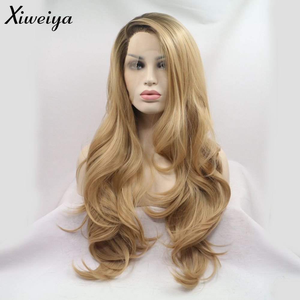 xiweiya Long Natural Wave Ombre Brown Blonde Synthetic Lace Front Wigs with Brown Roots 2 Tones Side Part Wig Heat Resistant Fiber Hair Wigs For Women Replacement Everyday Wigs 24"(Blonde)