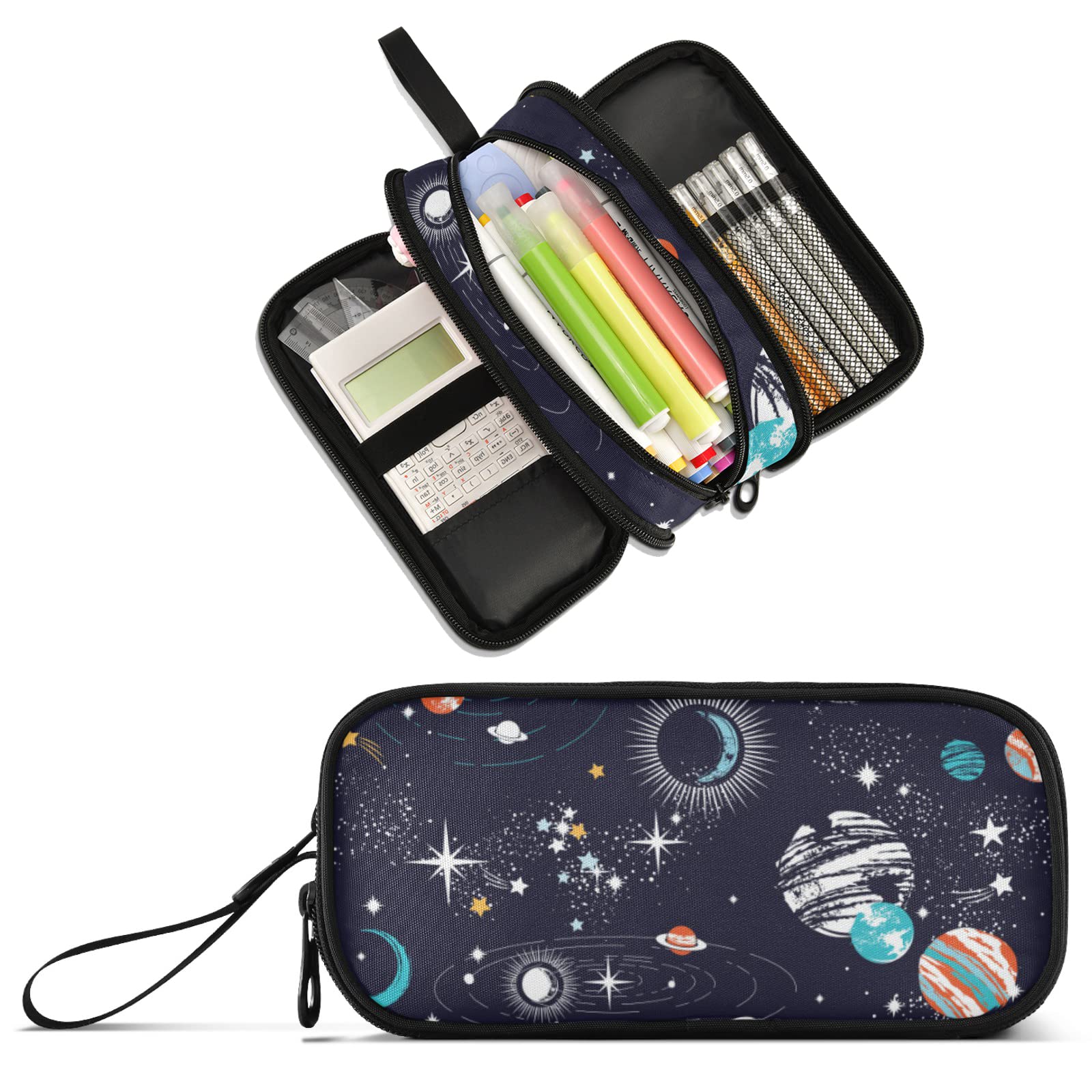 XUWU Space Planets Large Capacity Pencil Case 3 Compartment Pencil Bag Storage pouch with zippers for Adults School Teen Girl Boy