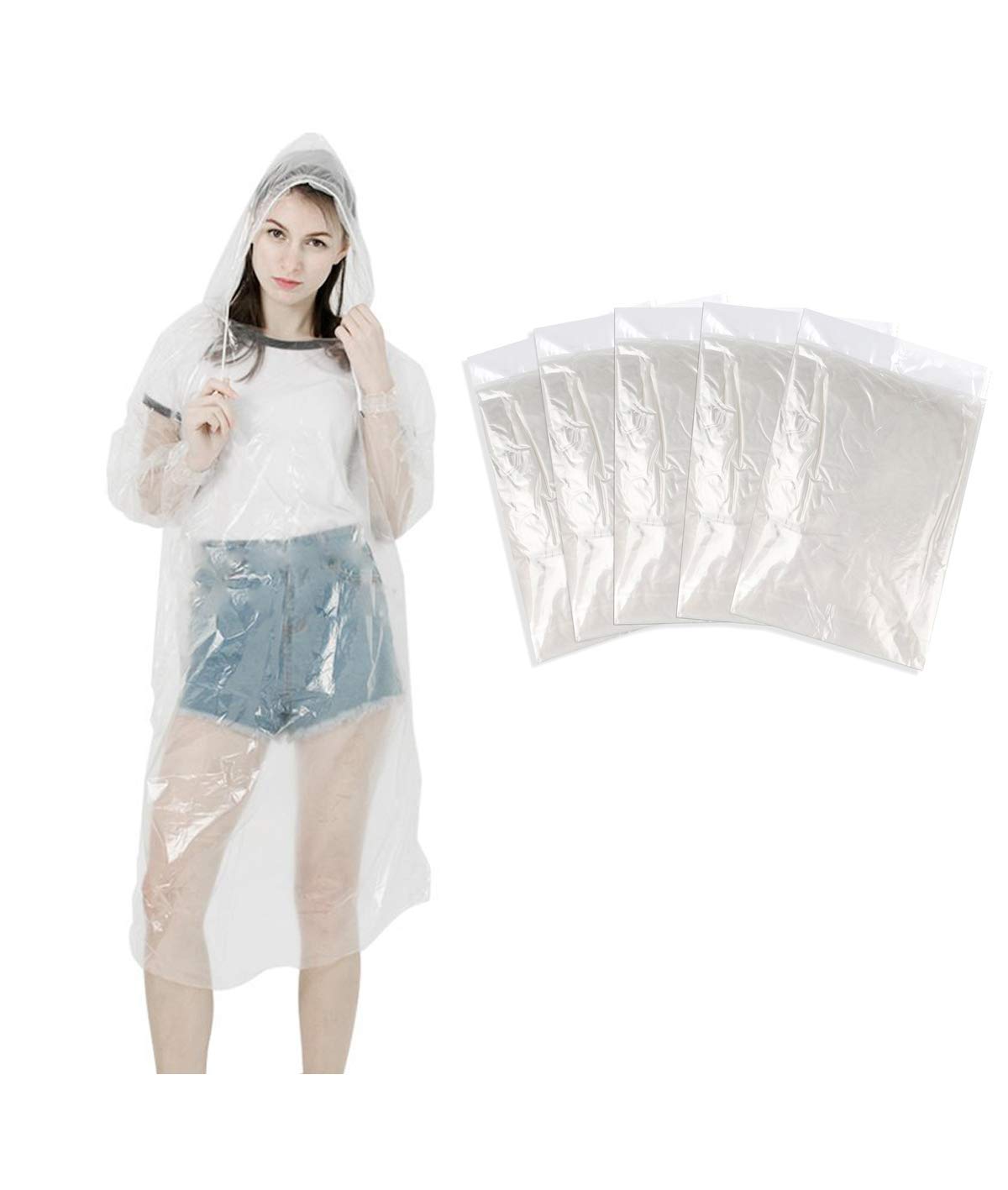 XY Life rain poncho, rain cape, coat, poncho, cape, coat with hood, pack of disposable transparent breathable ponchos for biking, hiking, festivals, concerts, 5 pcs