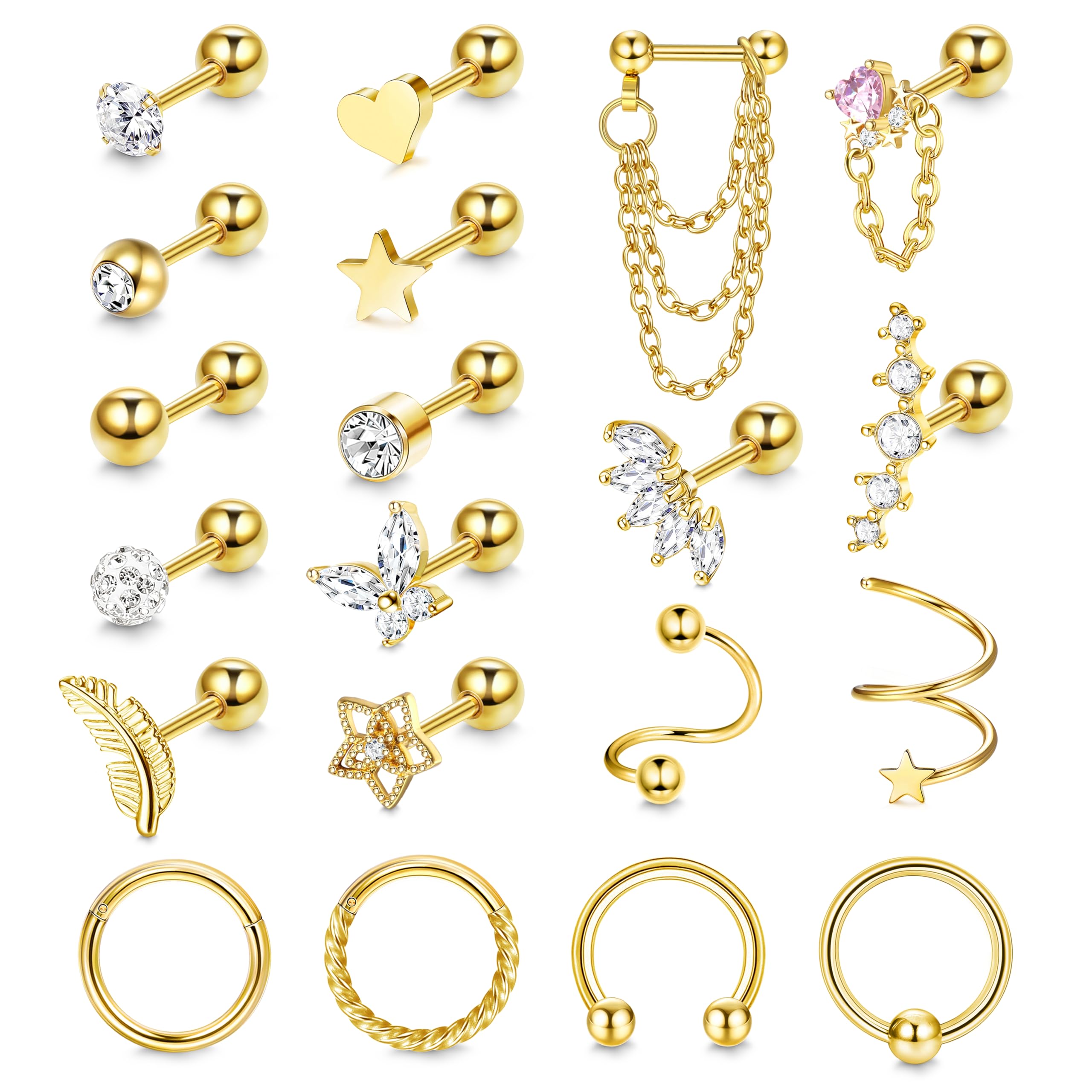2. 20Pcs Cartilage Earring Tragus Piercing Jewelry Forward Helix Earrings For Women Men