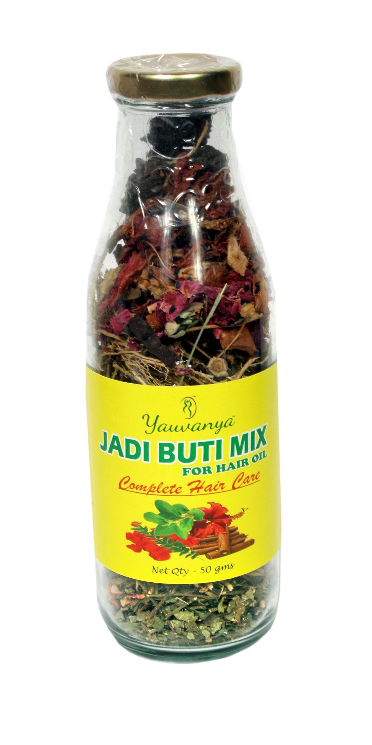 Yauvanya Jadi Buti Mix is a combination of 11 sundried Herbs which are proven to be very good for your hair. Regular usage of this oil keeps your hair healthy and shining. It provides nourishment to hair roots and helps reduce early greying, dandruff, hairfall etc. Directions to use: Add 400 - 500 ml of Sesame/Coconut oil to this bottle. Keep it in sun for 4-5 days to allow the goodness of herbs to be absorbed by oil. Then apply regularly once/twice a week. Massage gently. Shampoo 2 hours after applying.