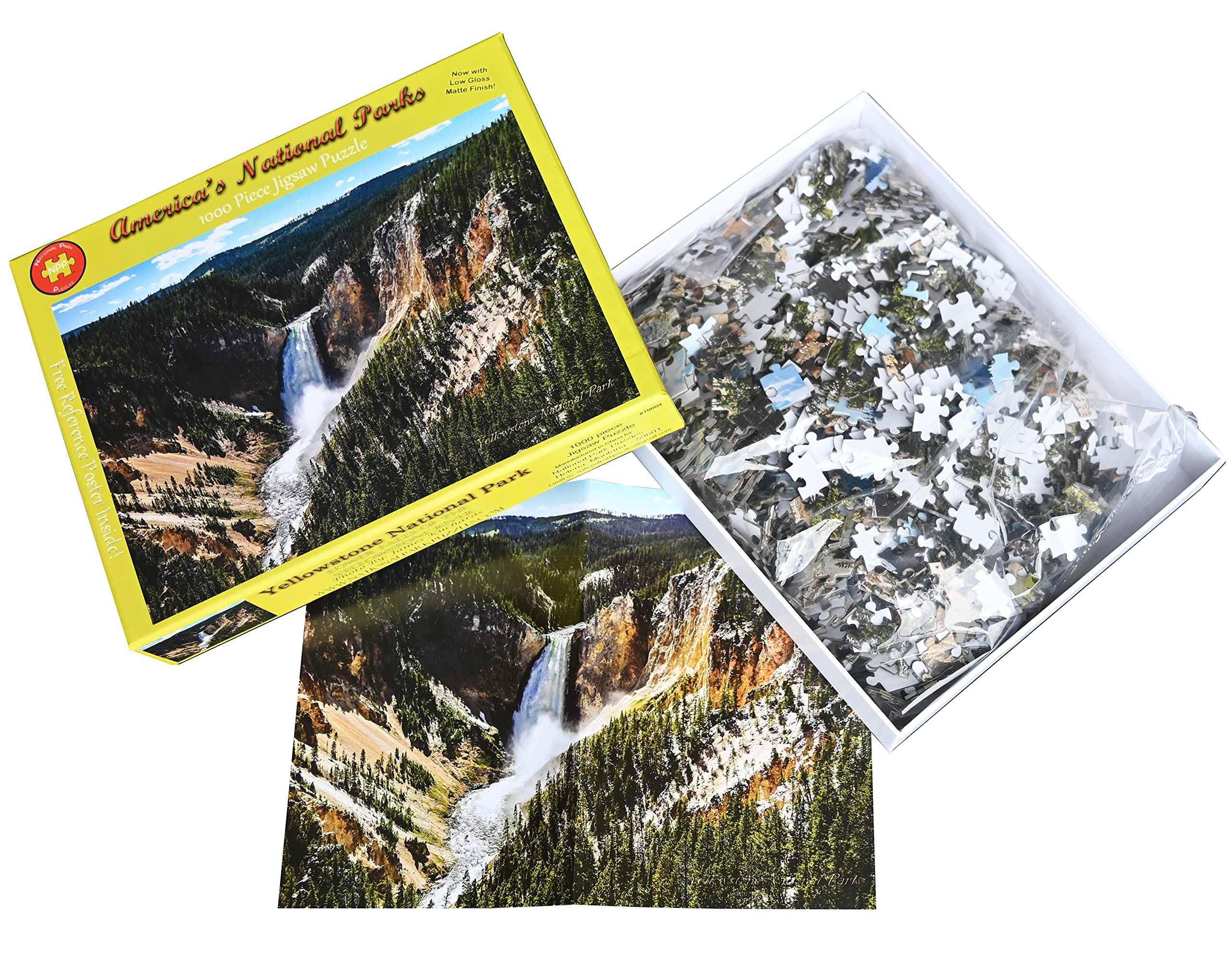 This beautiful image of Lower Falls at Yellowstone National Park is also one of our best selling puzzles. Our 1000 piece puzzles are 27.6 x 19.7 inches when completed, irregular piece shape to produce an interlock so tight you can pick it up and flip it over without losing a piece! We use a dust free manufacturing process, Grade A chipboard 1/16 inch thick for sturdy, durable pieces that wont bend or break easily, and a premium matte finish to reduce glare, making a puzzle you will love to frame and hang on your wall when you are done! Reference Poster is included in the box! This has been my best selling puzzle!