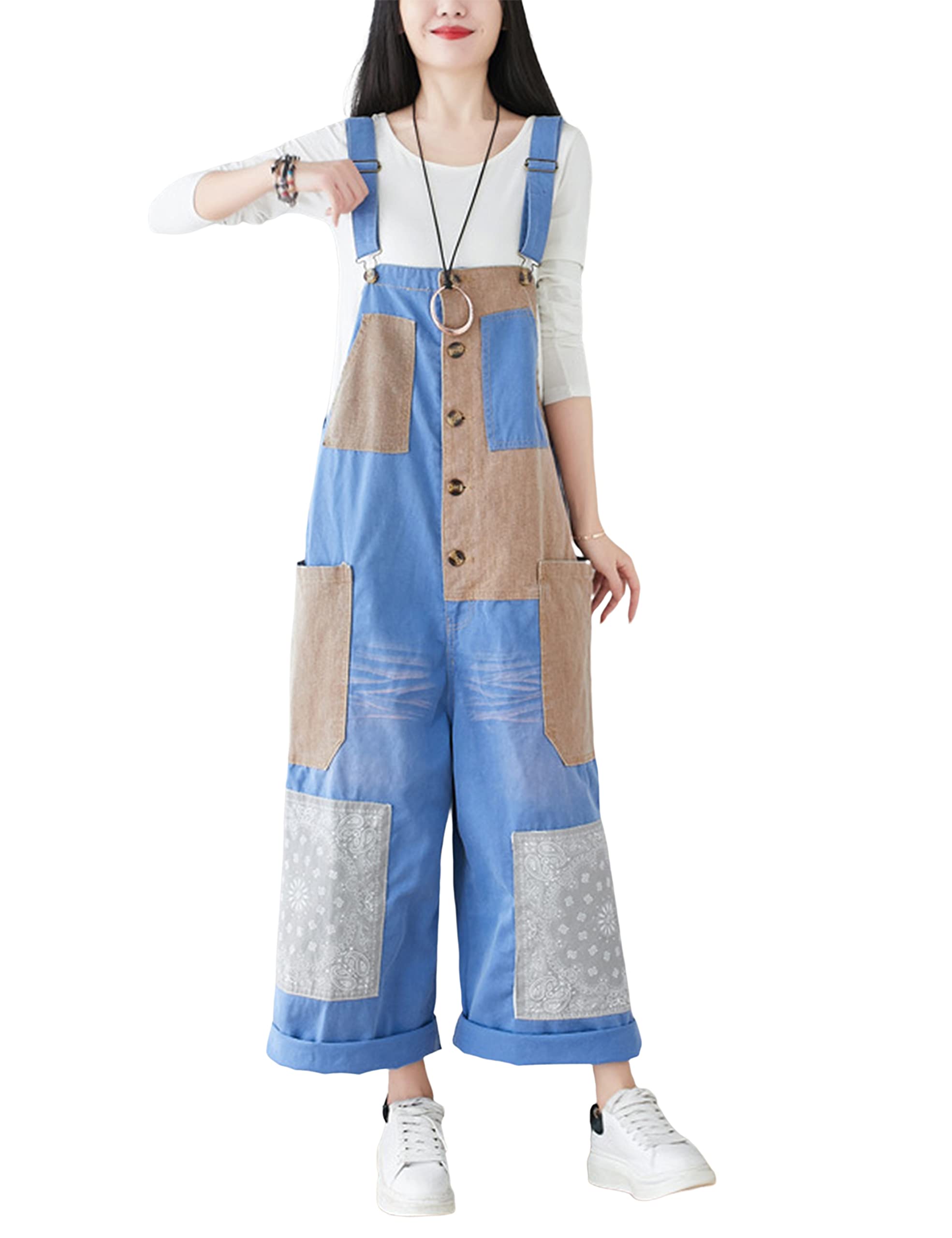 Yeokou Women's Loose Baggy Denim Wide Leg Drop Crotch Jumpsuit Rompers Overalls