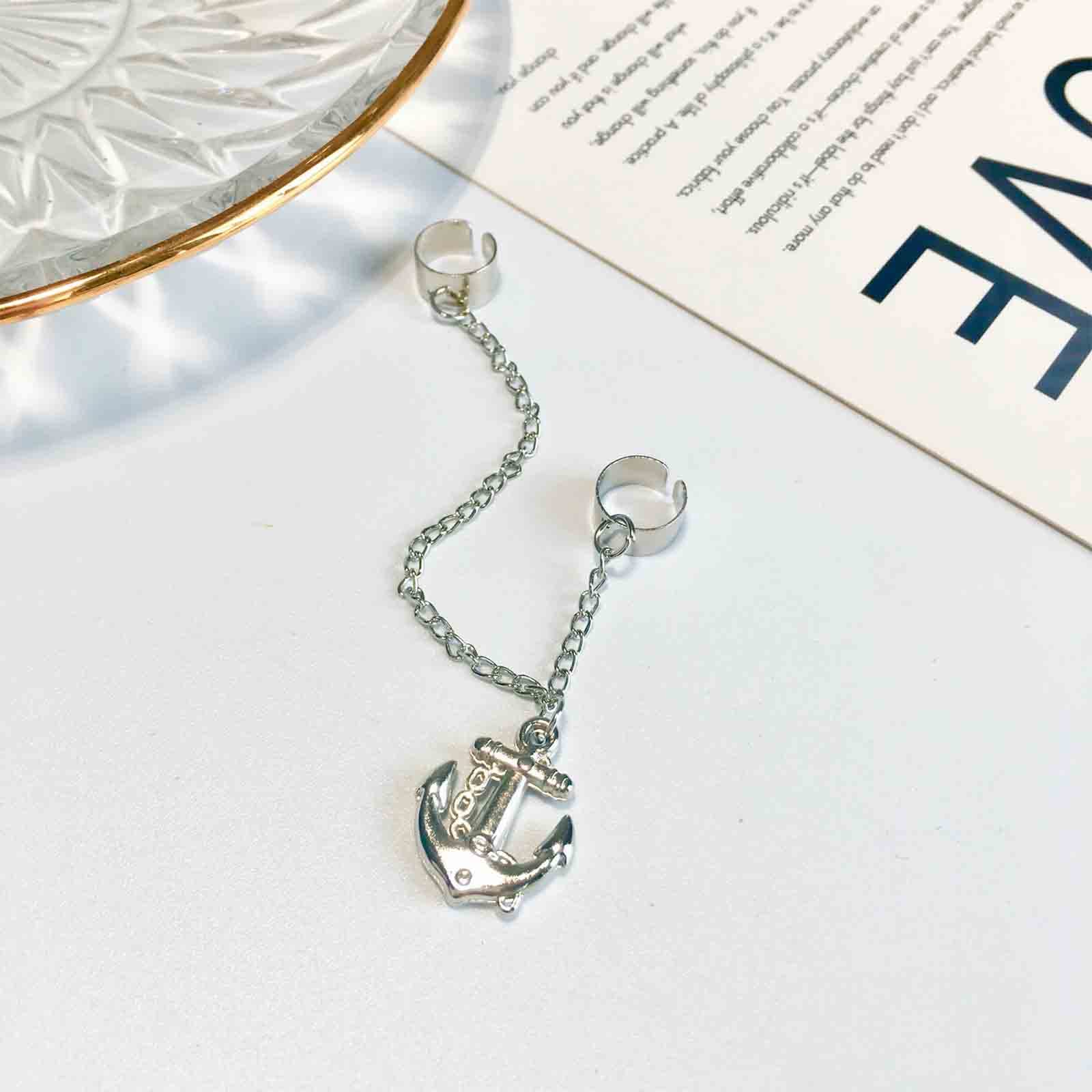 Yheakne Anchor Chain Cuff Earrings Silver Anchor Dangle Chain Earrings Helix Chain Cartilage Earrings Non Piercing Earrings Jewelry for Women and Girls