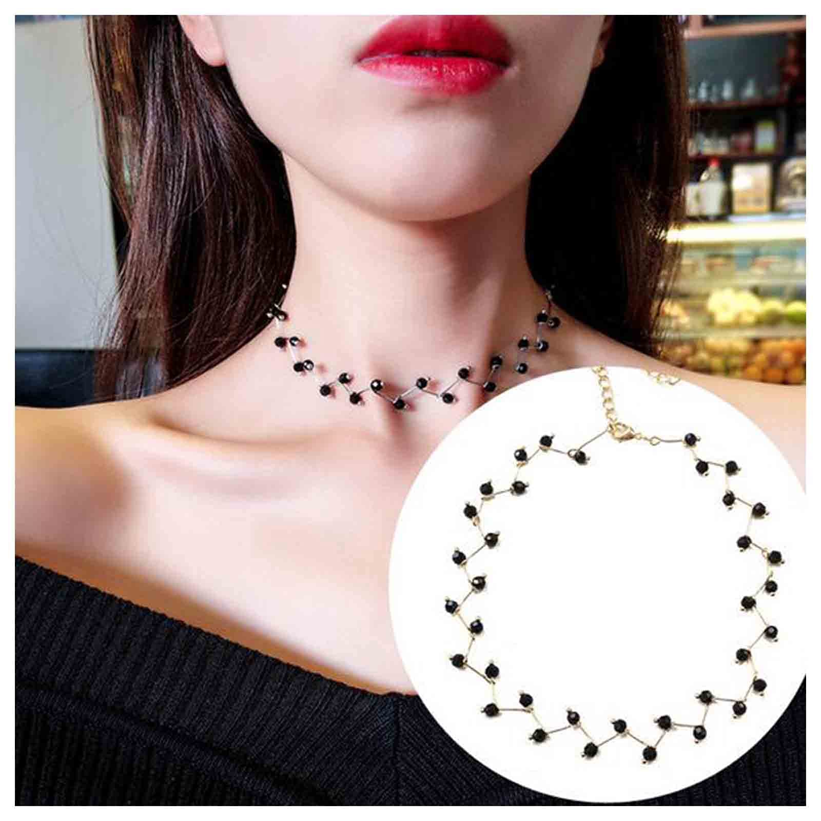 Yheakne Black Crystal Choker Necklace Short Black Beaded Choker Necklace Gold Chain Necklace Minimalist Necklace Jewelry for Women and Girls (Gold)