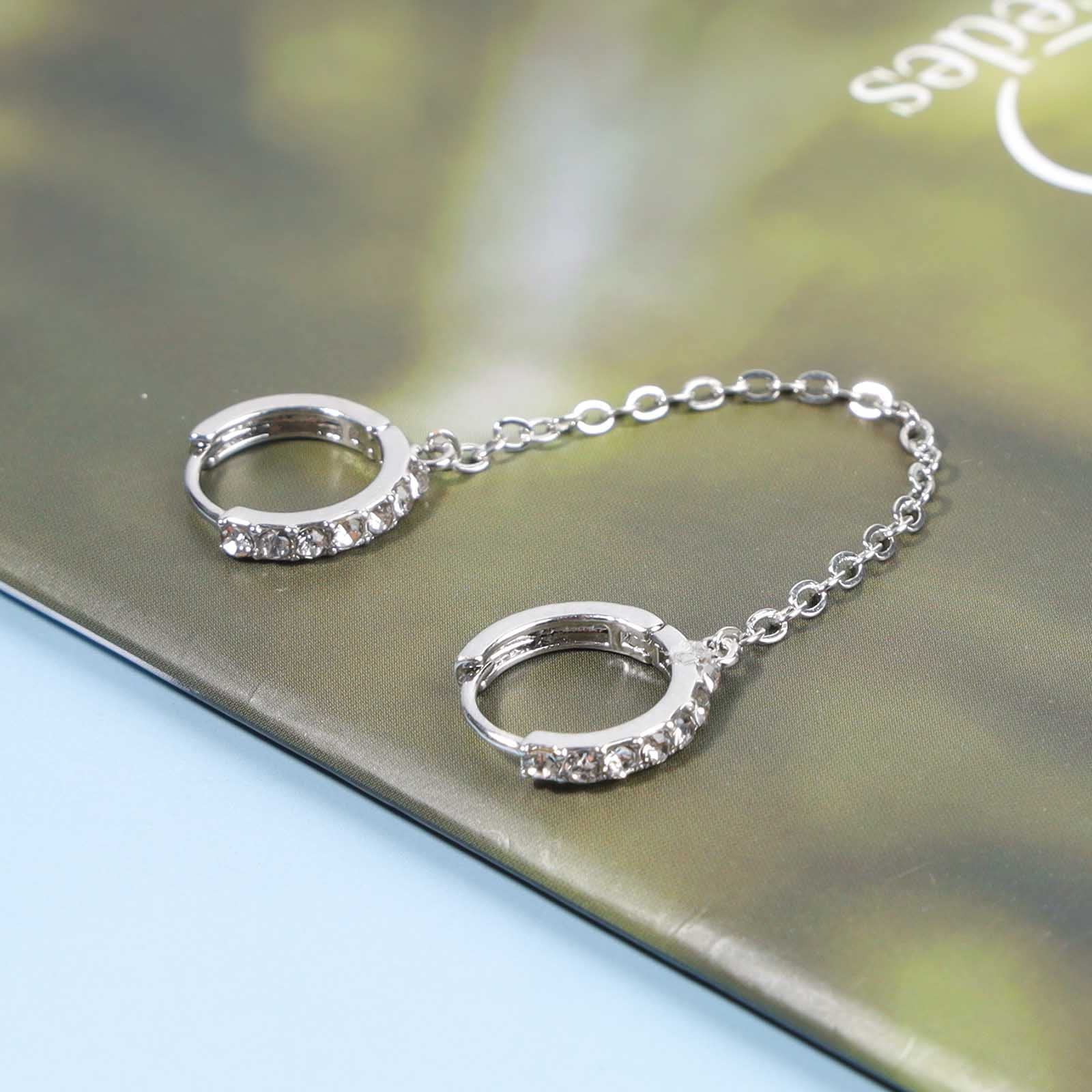 Yheakne Boho Double Chain Hoop Earrings Silver Cz Hoop Chain Earrings Punk Dangle Chain Earrings Rhinestone Huggies Earrings Jewelry for Women and Girls Gifts (Silver)