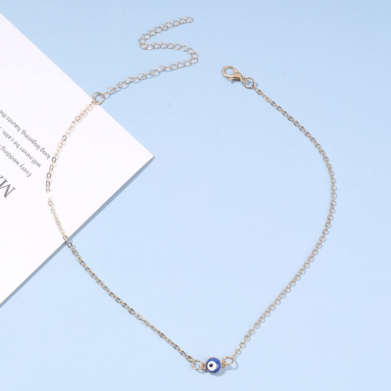 Yheakne Boho Evil Eye Choker Necklace Blue Eye Pendant Necklace Minimal Gold Chain Necklace Lucky Eye Necklace Amulet Chain Jewelry for Women and Girls