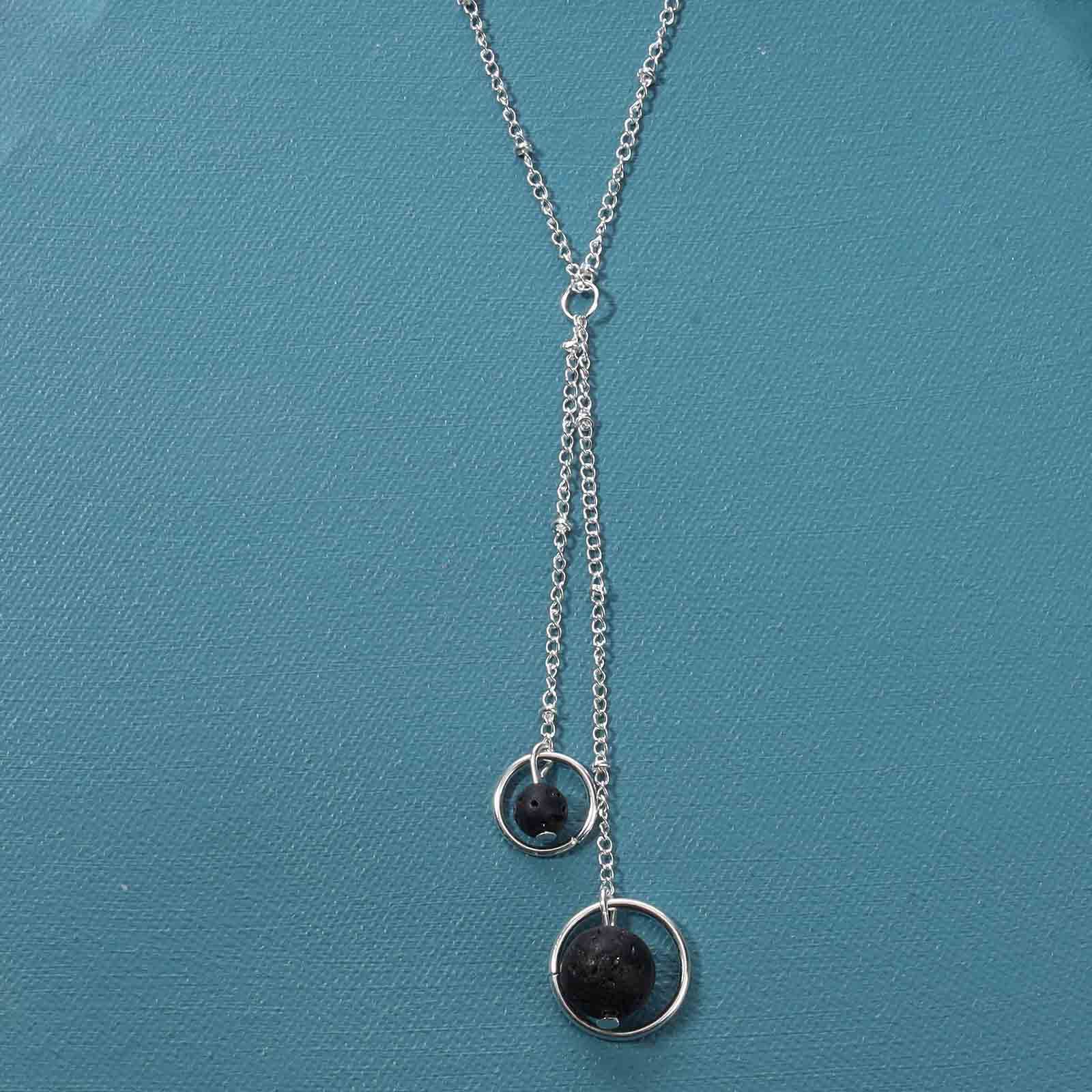 Yheakne Boho Lava Stone Necklace Chain Silver Layered Chain Y Necklace Lava Bead Lariat Necklace Anxiety Essential Oil Diffuser Necklace Jewelry for Women and Girls