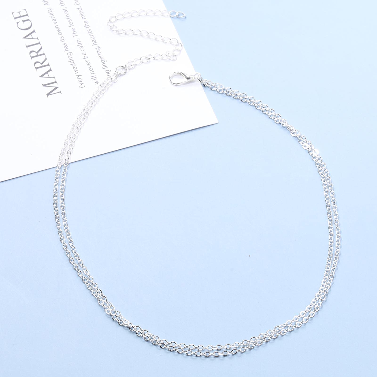 Yheakne Boho Layered Chain Choker Necklace Silver Double Strand Choker Necklace Short Skinny Necklace Chain Modern Minimalist Necklace Jewelry for Women and Girls (Silver)