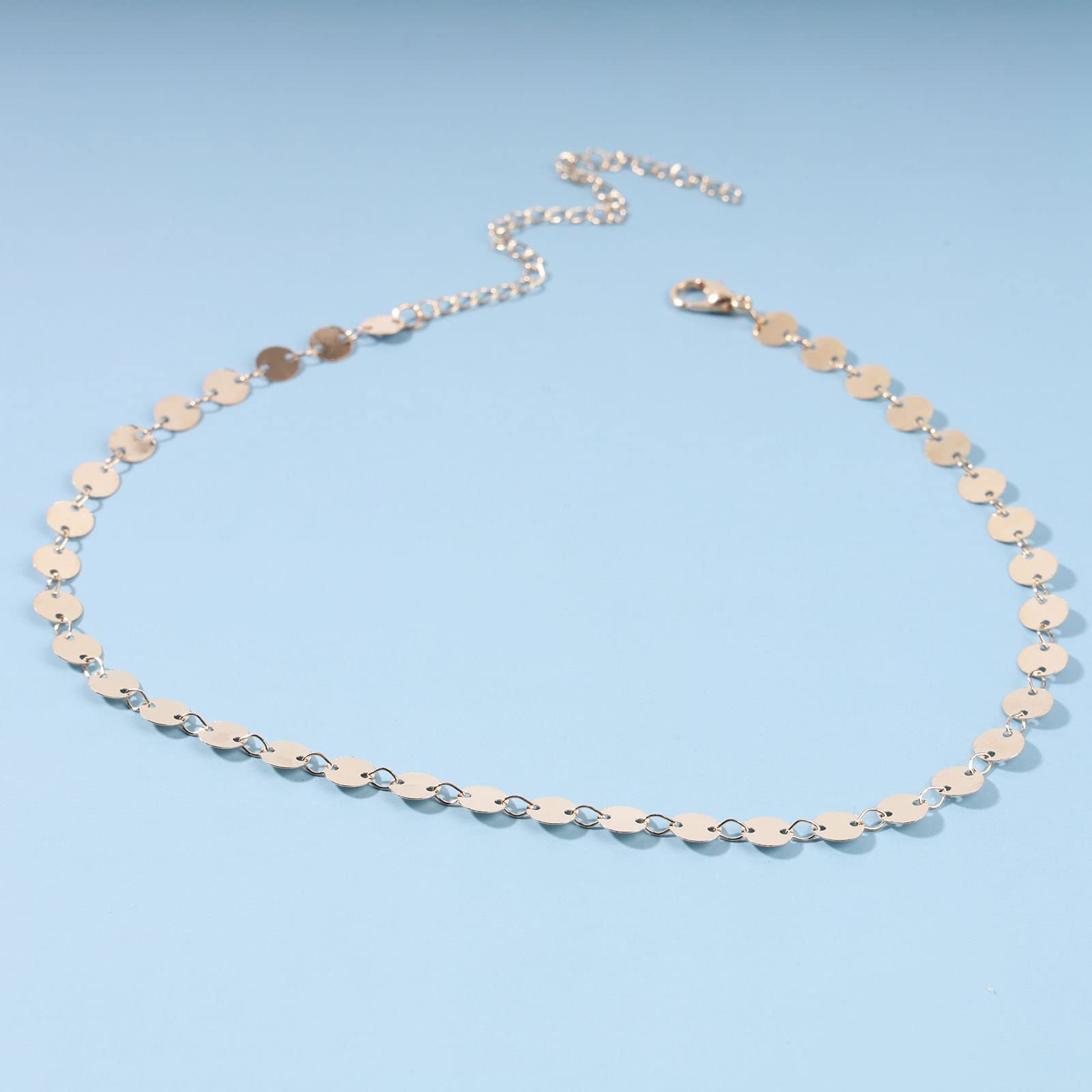 Yheakne Boho Layered Satellite Disc Choker Necklace Gold Sequin Disc Chain Necklace Vintage Double Layer Necklace Short Collarbone Necklace Chain Jewelry for Women and Girls Gift