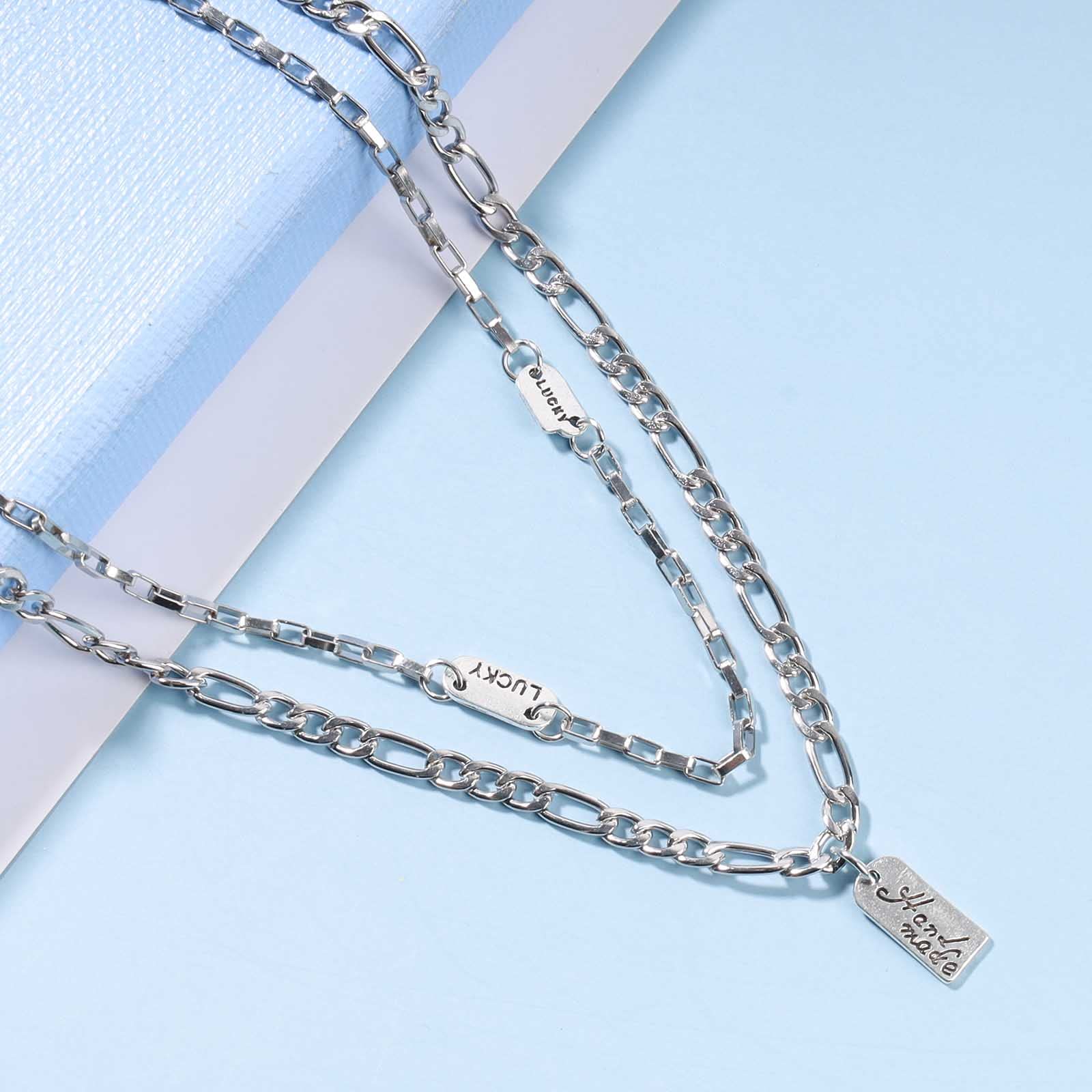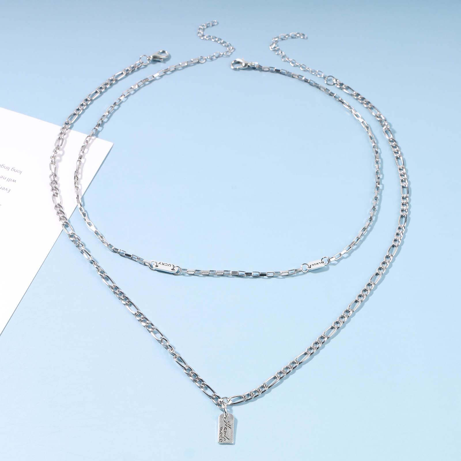 Yheakne Boho Layered Silver Bar Necklace Choker Figaro Chain Necklace Vintage Layering Link Chain Necklace Geometric Necklace Jewelry for Women and Girls