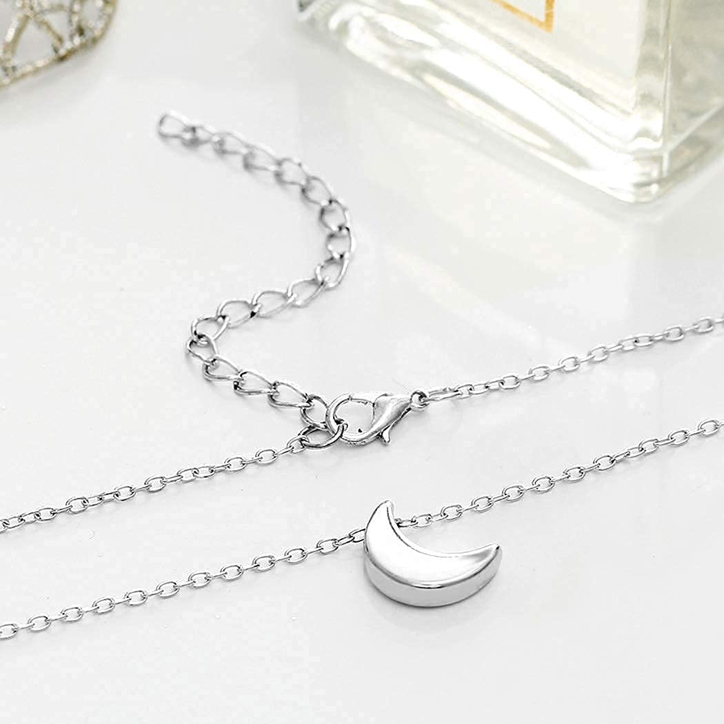 Yheakne Boho Moon Necklace Choker Silver Moon Phase Choker Necklace Crescent Moon Pendant Necklace Flat Moon Necklace Jewelry for Women and Girls (Silver)